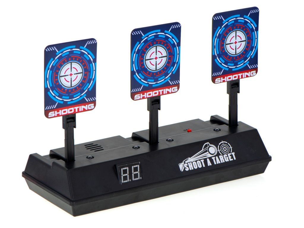 Elektronický terč je fantastický produkt pre každého milovníka NERF. Umožňuje cvičenie na terč bez nutnosti ručného nastavovania terčov. Dieťa si osvojuje zručnosti koordinácie oko-ruka, sústredenie, pretože zostreľovanie terčov si vyžaduje sústredenie.
