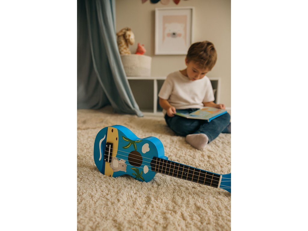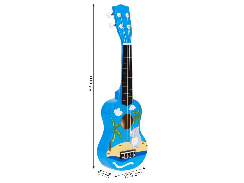 Detské ukulele drevená gitara 4 struny nylonové trsátko ECOTOYS
