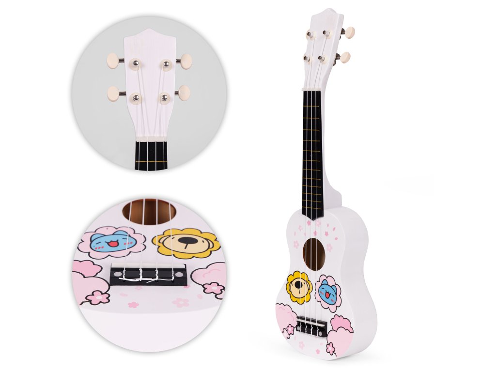 Detské drevené ukulele ECOTOYS, 4 nylonové struny