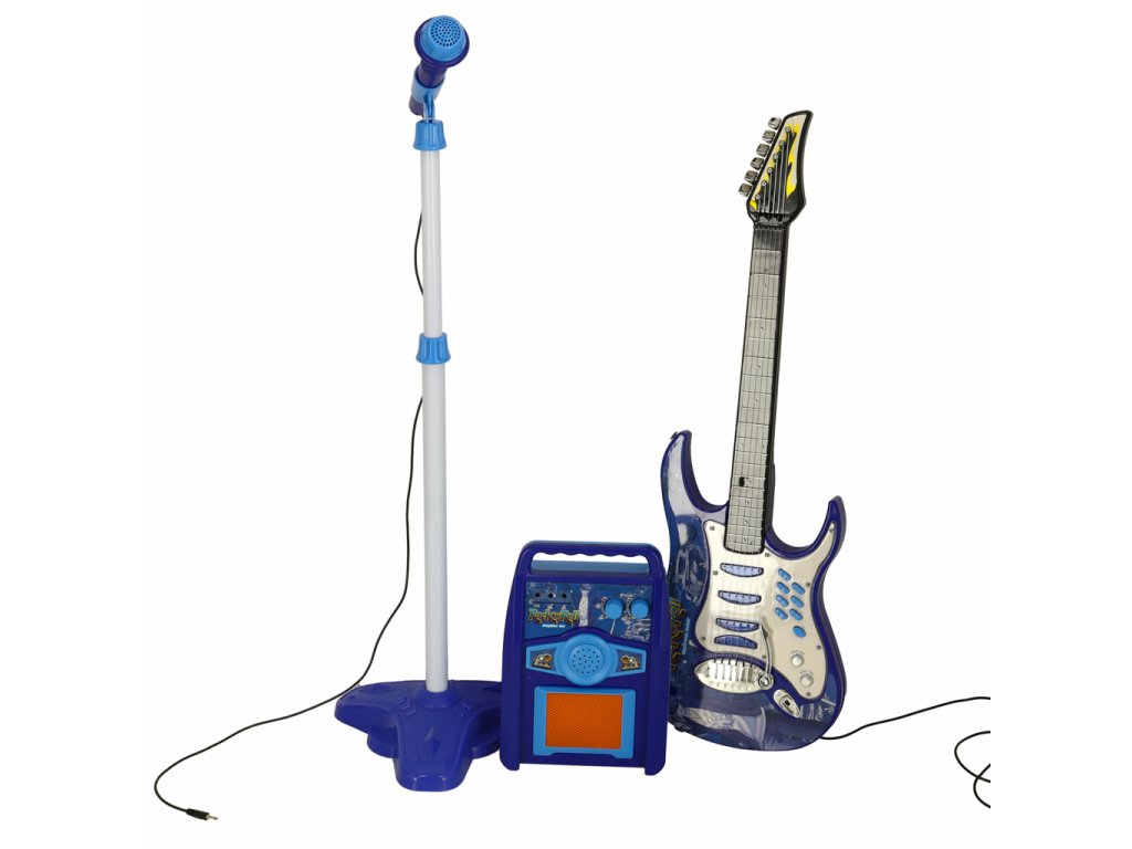 Gitara elektryczna z akcesoriami to idealna zabawka dla małego muzyka marzącego o wielkiej scenie. Zestaw zawiera gitarę, wzmacniacz i mikrofon na regulowanym statywie.