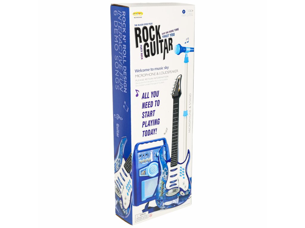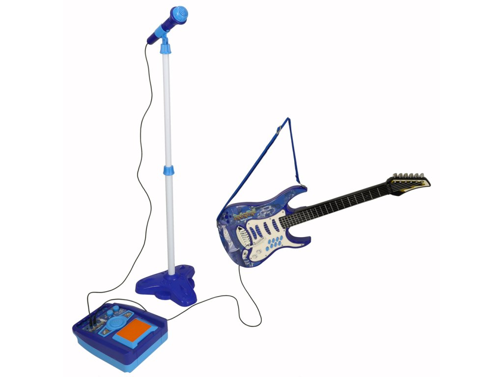 Dołączony pasek pozwala nosić gitarę jak prawdziwy rockman. A stojak na mikrofon można dostosować do wzrostu dziecka.