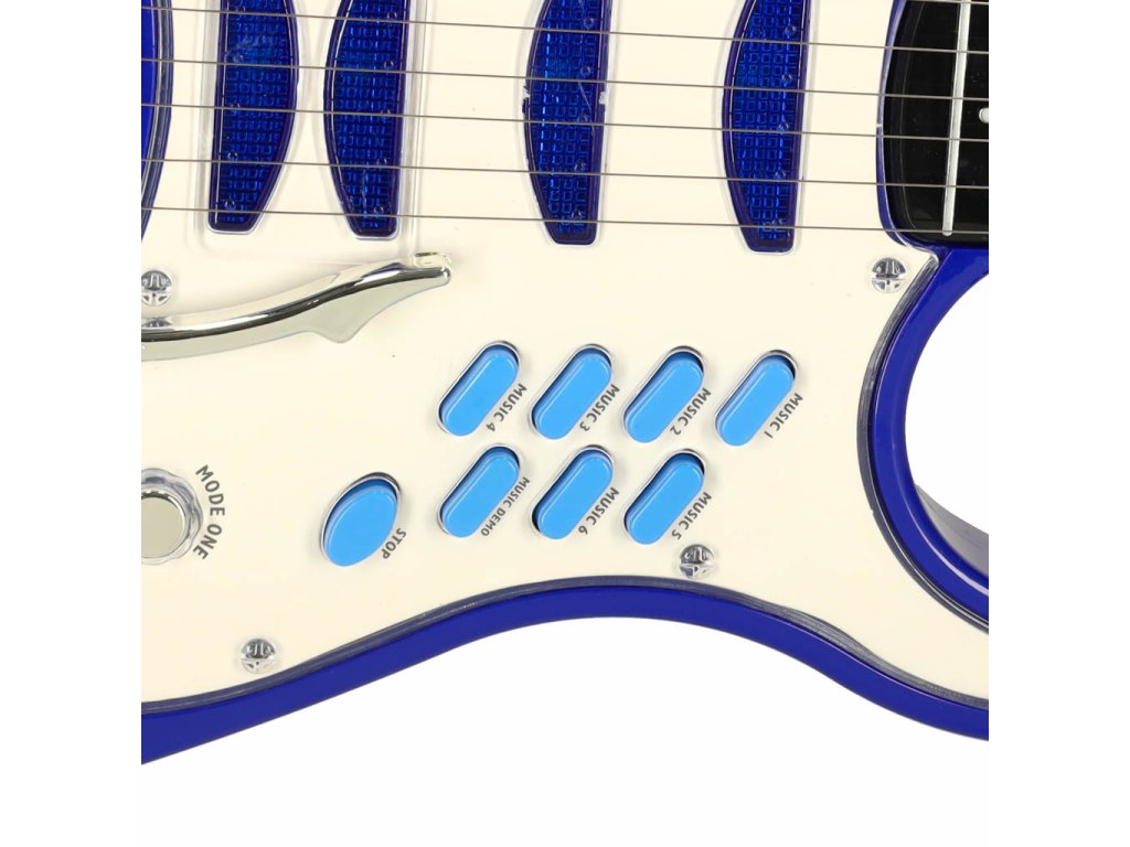 dwa sposoby gry – dziecko może szarpać struny jak prawdziwy gitarzysta lub korzystać z sześciu wgranych melodii, które ułatwiają pierwsze kroki w świecie muzyki.