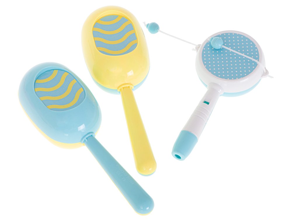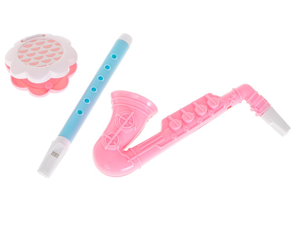 Trúbka: 15 cm x 12,5 cmtamburína: 10,5 cm x 3 cmdĺžka lethy: 15 cmhrkálka: 6 cm x 16 cmsaxofón: 15 cm x 8 cm kastanet: 6 cmšejker: 13 cm x 15,5 cmrozmery balenia: 32 cm x 36 cm x 8 cm