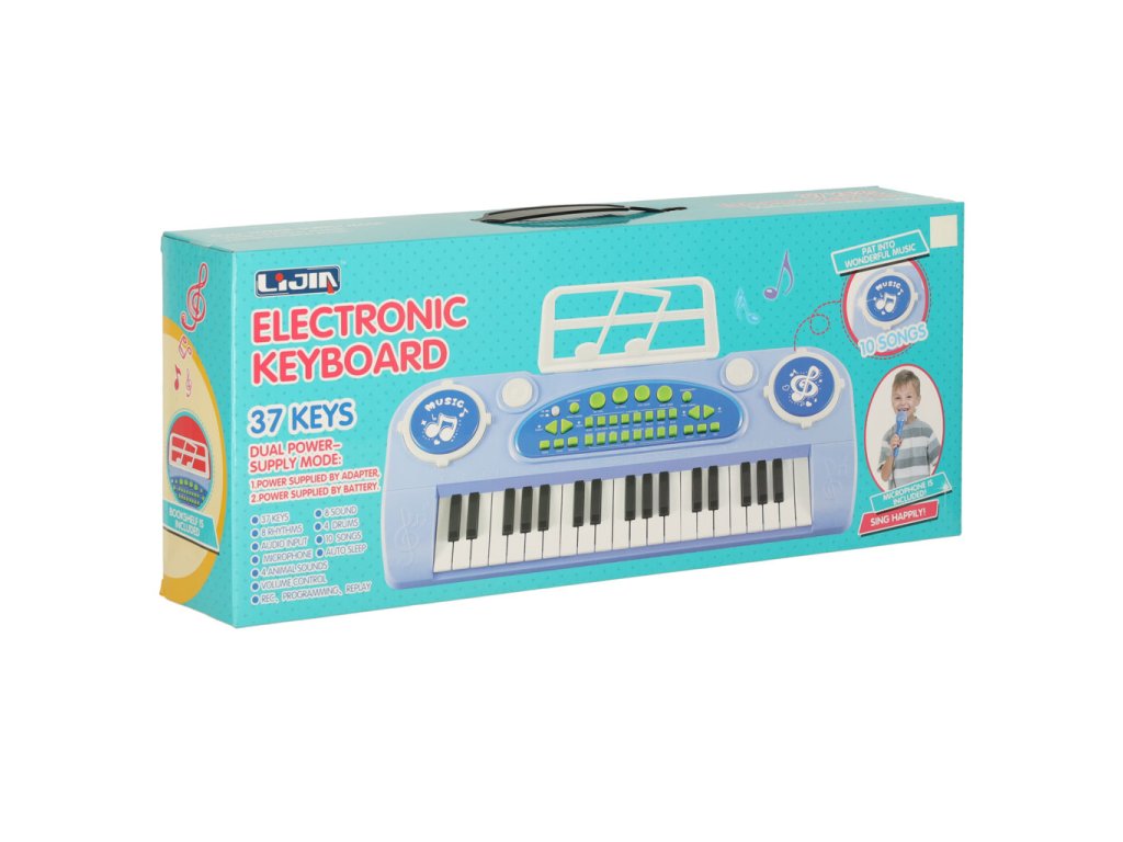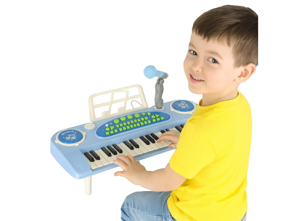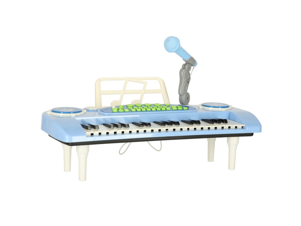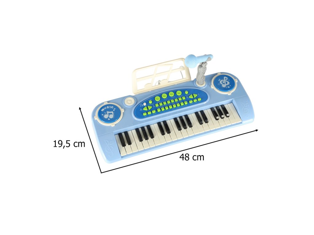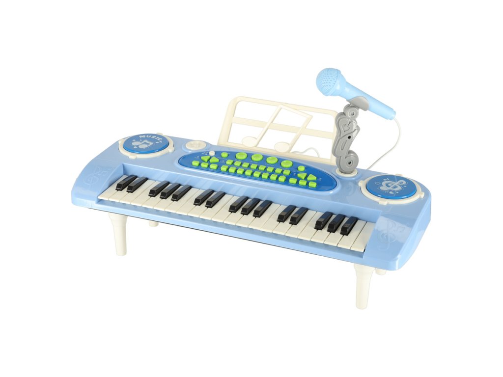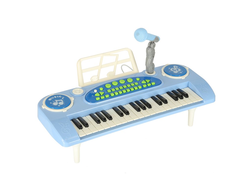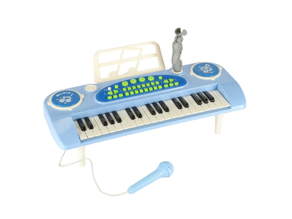INTERAKTÍVNY KLAVÍRNY ORGANOVÝ MIKROFÓN MODRÝSúprava obsahuje: - Pianinko- 4 robustné nohy- Mikrofón s káblom (celková dĺžka 95 cm)- Stojan na noty- Stojan na mikrofón- Návod na použitie Vlastnosti: - 37 kláves- 8 rytmov- 8 zvukov- 4 bicie- 10 skladieb- 4 zvuky zvierat- Automatický spánok- Audio vstup- Mikrofón- 16-stupňové ovládanie hlasitosti- Nahrávanie, programovanie, prehrávanie Technické špecifikácie: - Vek: 3+ - Farba: modrá, modrá, biela, zelená, čierna - Materiál: plast- Napájanie: 4x AA batéria alebo pripojenie AC/DC adaptéra (nie je súčasťou balenia)- Počet tlačidiel:Rozmery klavíra - Dĺžka: 48 cm- Hĺbka : 19,5 cm- Výška: 6,5 cm- Dĺžkamikrofónu: 12,2 cm - Možnosť hrať na plocho alebo použiť vyvýšenie (nožičky)- Výška nožičky : 7,8 cm- Čistá hmotnosť: 750 g- Hrubá hmotnosť: 957 g- Výrobok zabalený vo farebnej kartónovej krabici s držadlom, rozmery: 48,2 x 20 x 8,3 cm