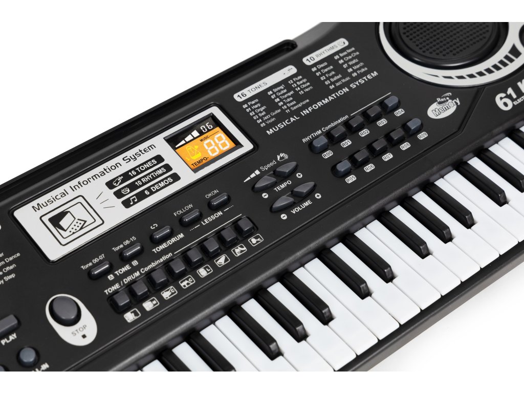 Predprogramované hudba na pozadí poskytuje mladým skladateľom veľkú inšpiráciu . Deti môžu experimentovať s rôznymi hudobnými štýlmi, vytvárať vlastné piesne a vďaka priloženému mikrofónu ich môžu doplniť o vokálne prvky. Každá melódia sa stane detským umeleckým dielom, a zábava pri skladaní bude nekonečná.