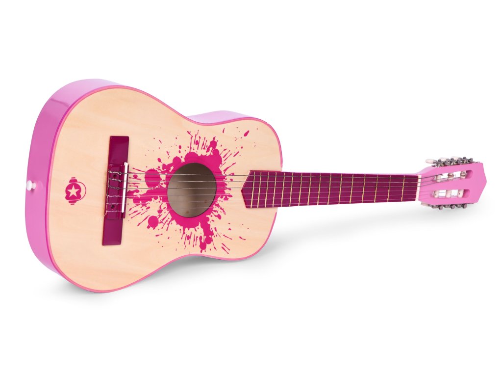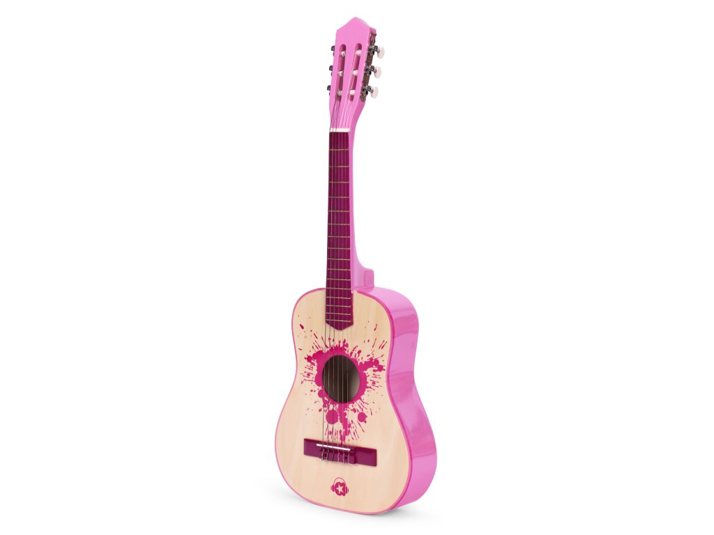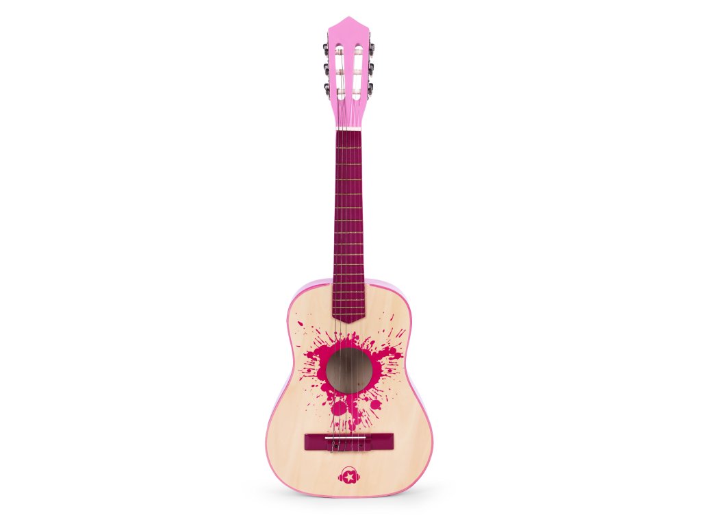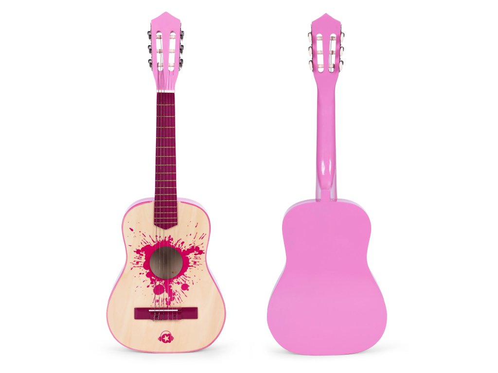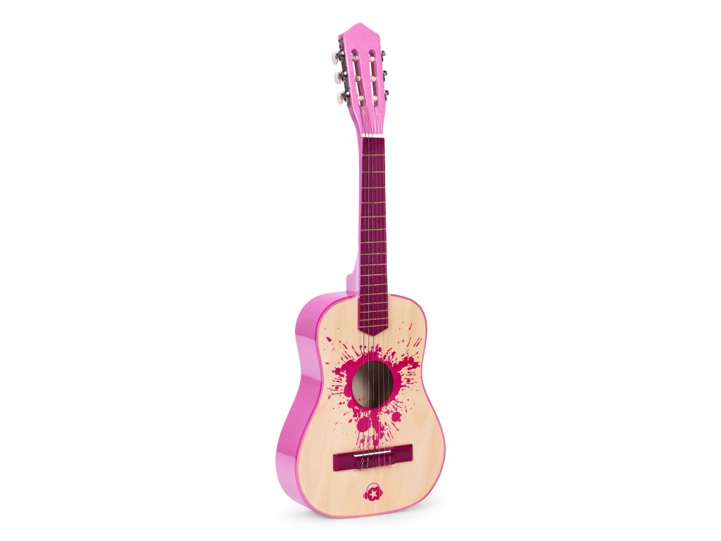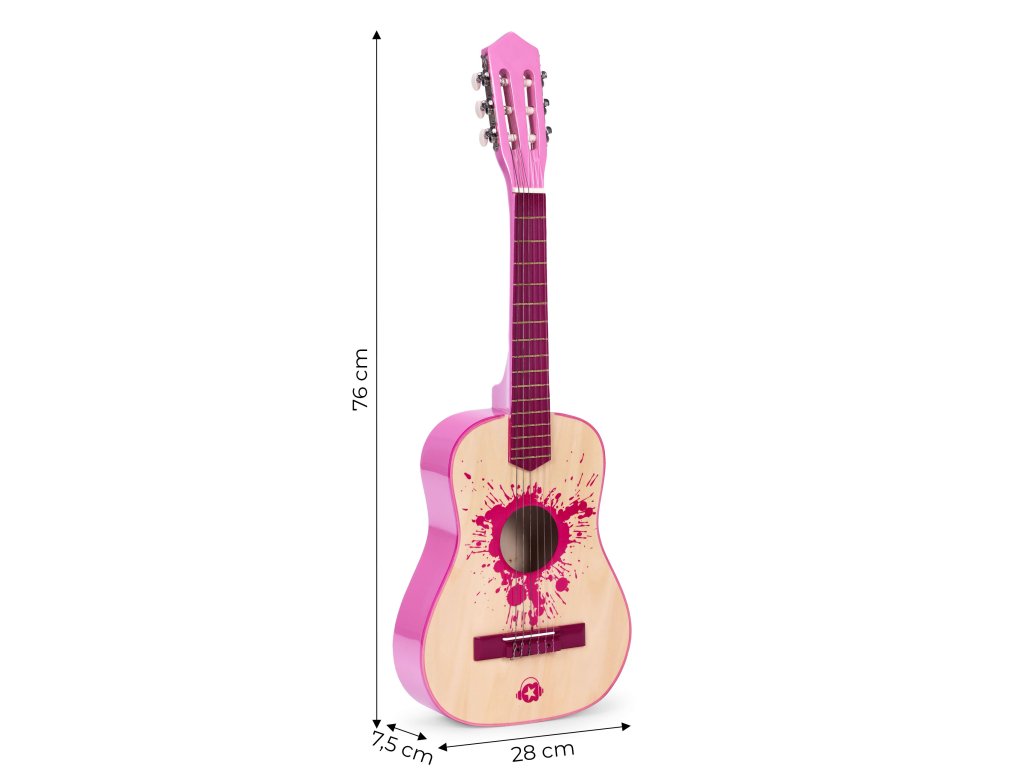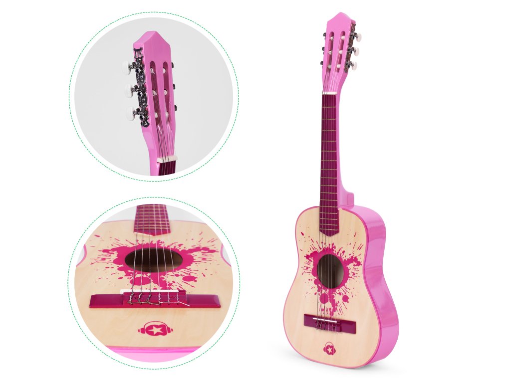Ružová detská gitara veľká - 30 drevených 6 strún kovových a nylonových ECOTOYS