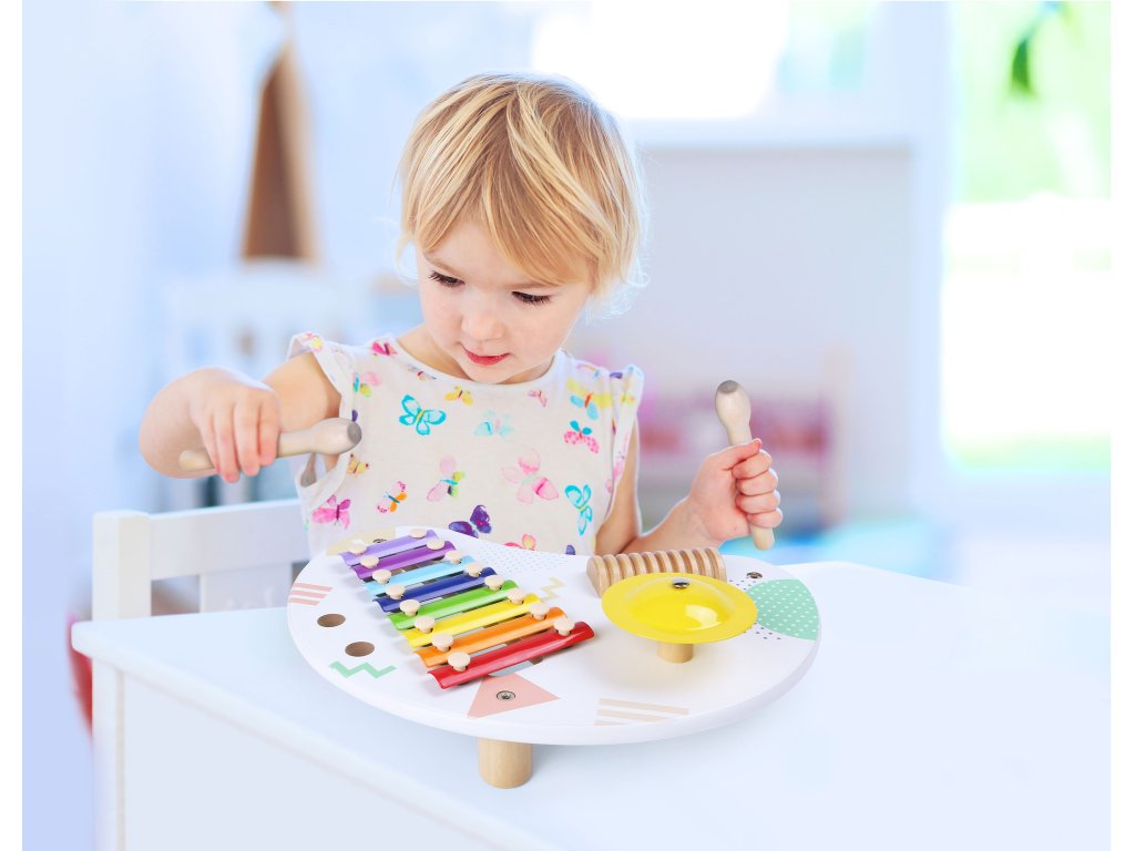 Drevený hudobný stolík s 3 nástrojmi ECOTOYS