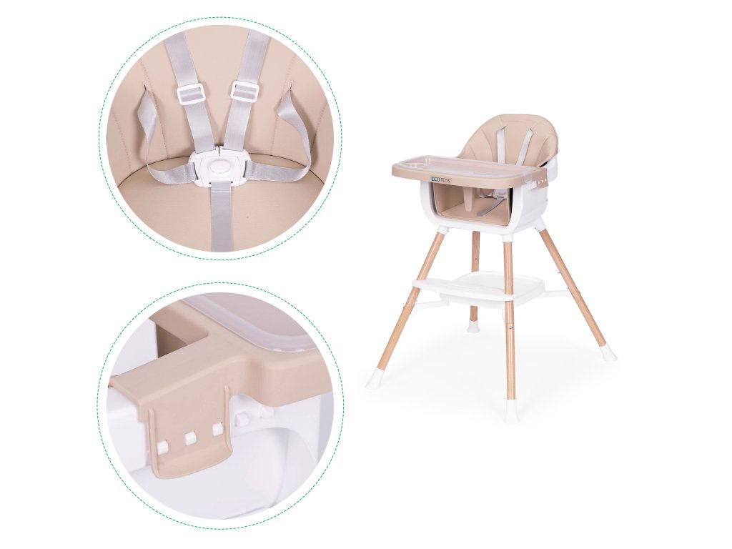 Detská stolička na kŕmenie 2v1 béžová ECOTOYS