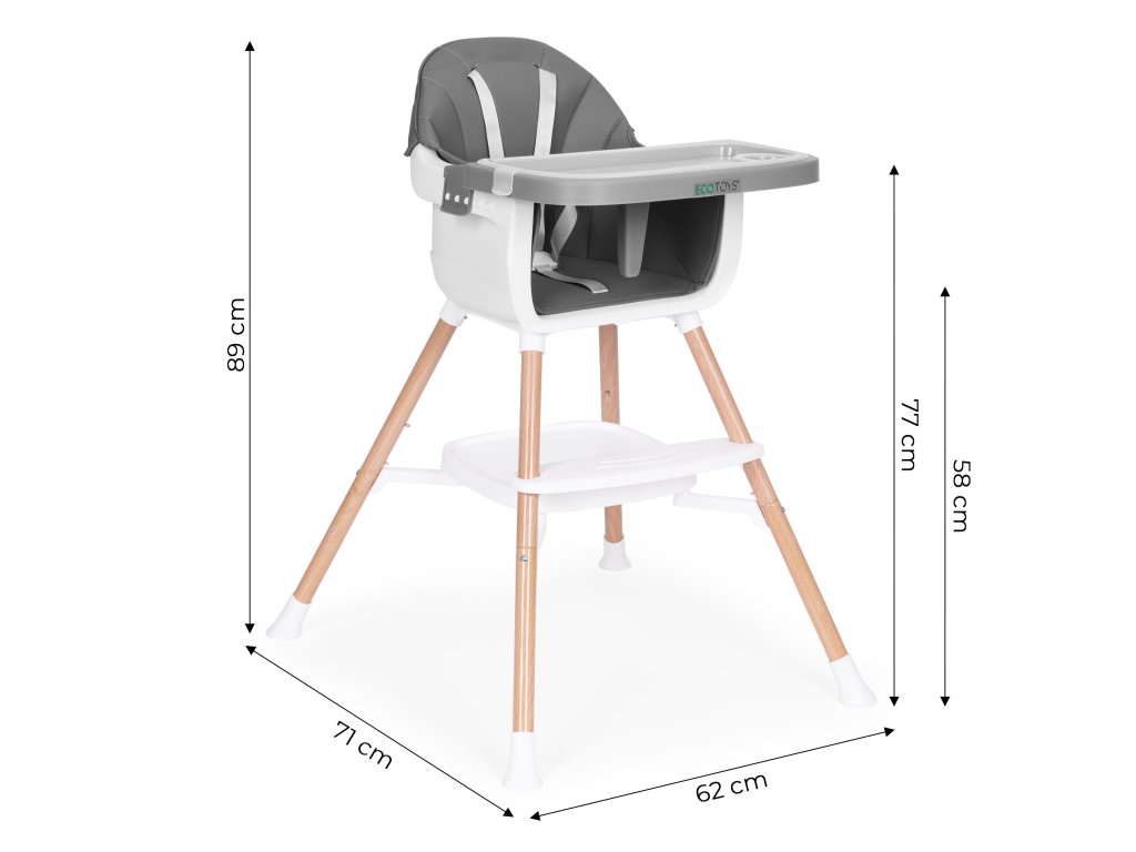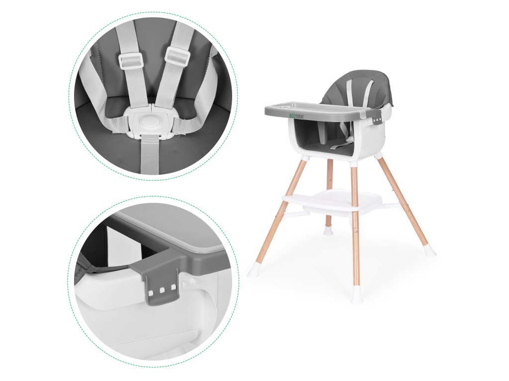 Detská 2v1 jedálenská stolička ECOTOYS, sivá