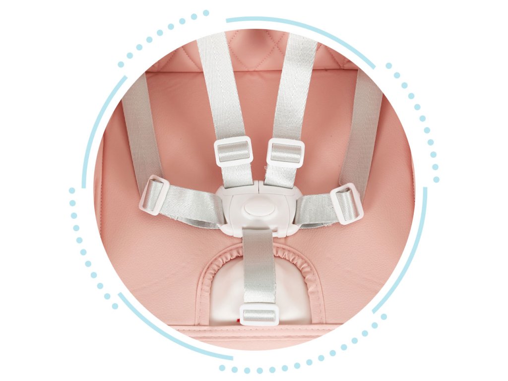 Sedadlo je vybavené 5-bodové bezpečnostné pásy, vďaka nim bude vaše dieťa primerane zabezpečená a okrem toho opasky udržujte ju v správnej polohe.