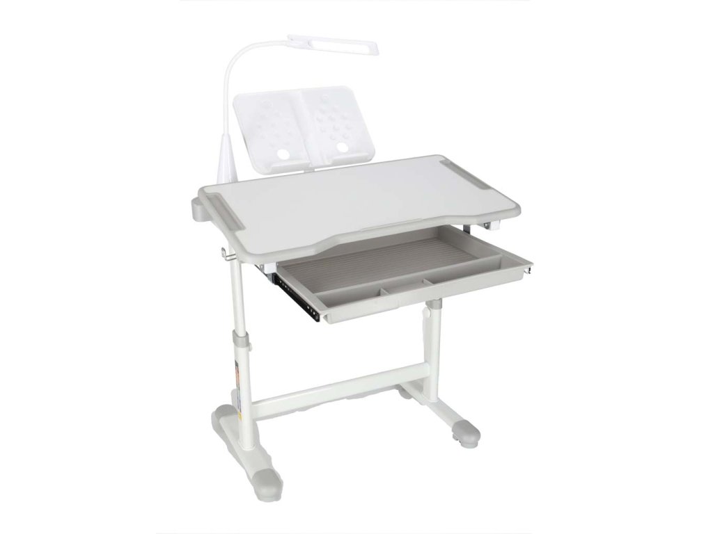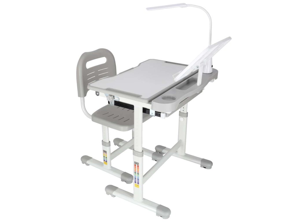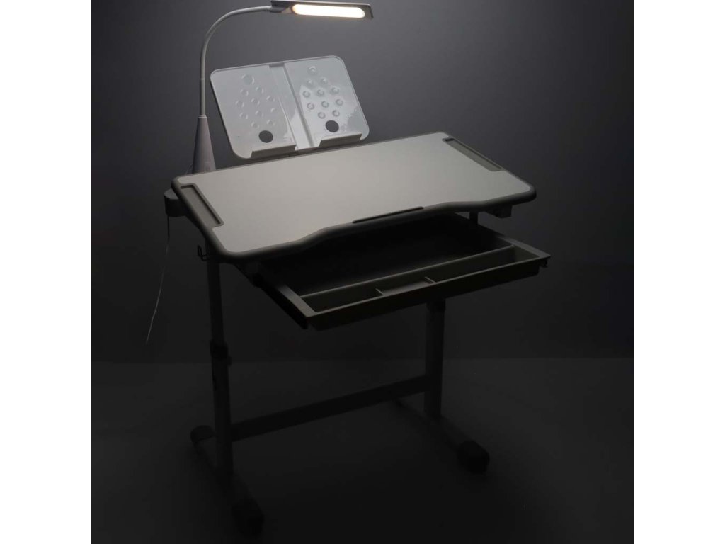 Detský písací stôl so zásuvkou stolička lampa šedá