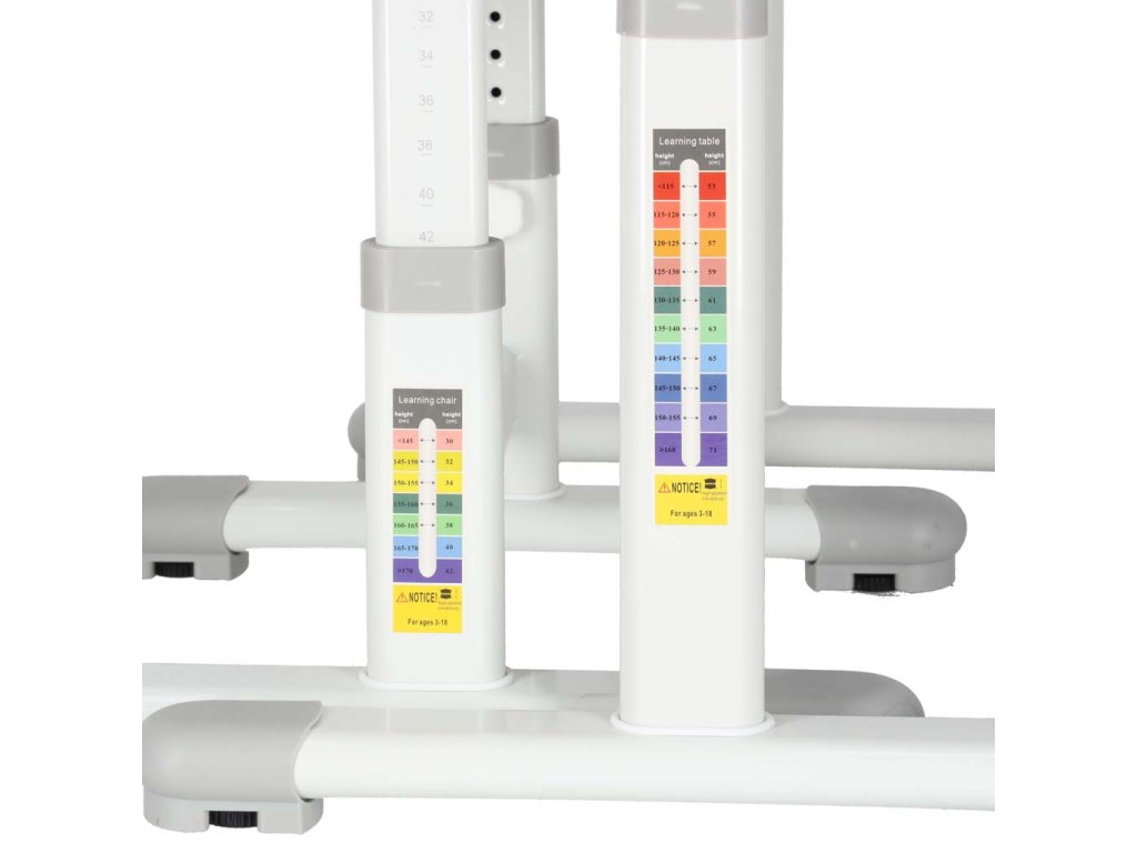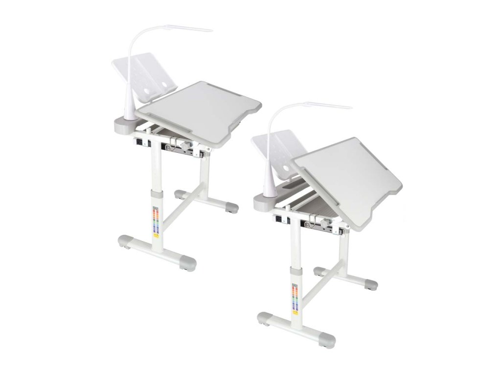 Správne nastavenie stola by malo byť založené výlučne na aktuálnych potrebách dieťaťa. Pohodlný stôl s nastaviteľnými skrutkami zaisťuje dlhodobé používanie. Stôl ponúka mnoho výhod – otváracia doska stola umožňuje organizáciu a poriadok. Držiak na knihy k detskému stolu zaisťuje pohodlné používanie učebníc formátu A5 a B5. Okrem toho stôl obsahuje držiak na poháre a háčik na batoh alebo tašku. Detský stôl s LED osvetlením pomôže vášmu dieťaťu sústrediť sa na danú úlohu, čo pozitívne ovplyvní získavanie a zapamätávanie si vedomostí.