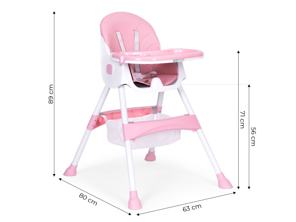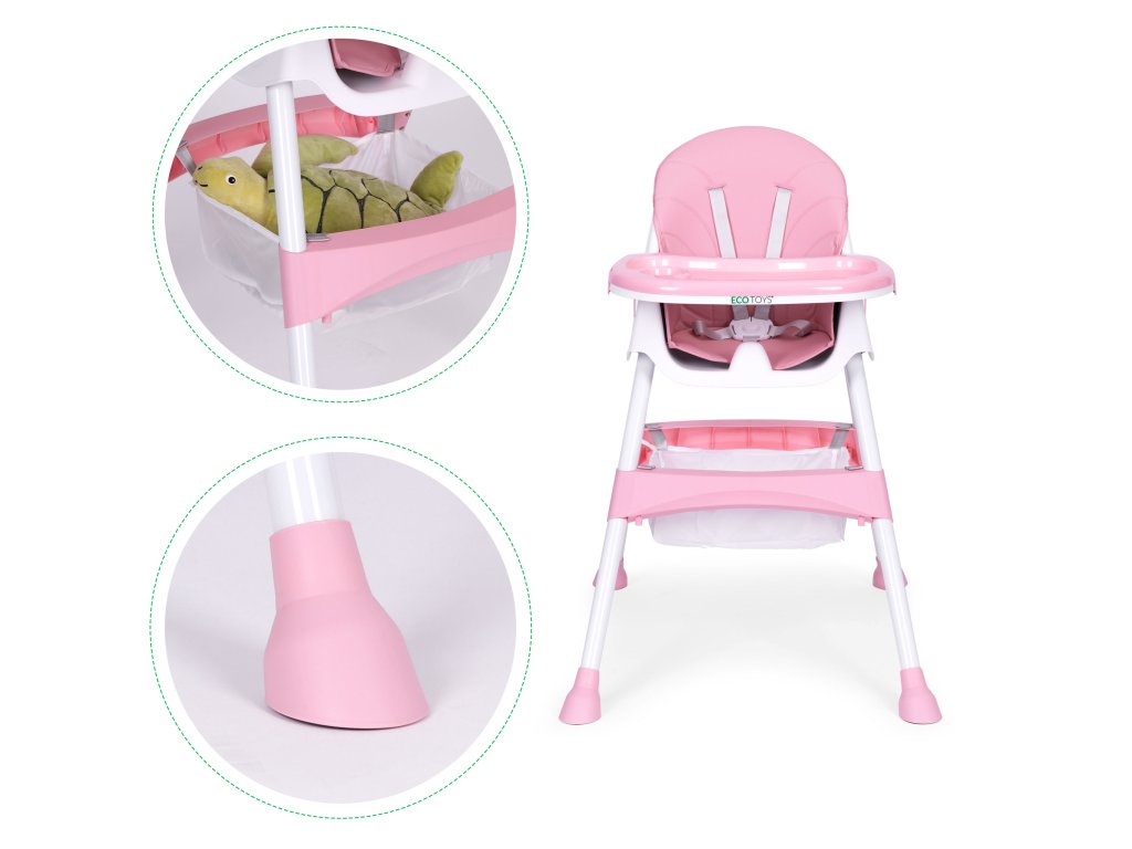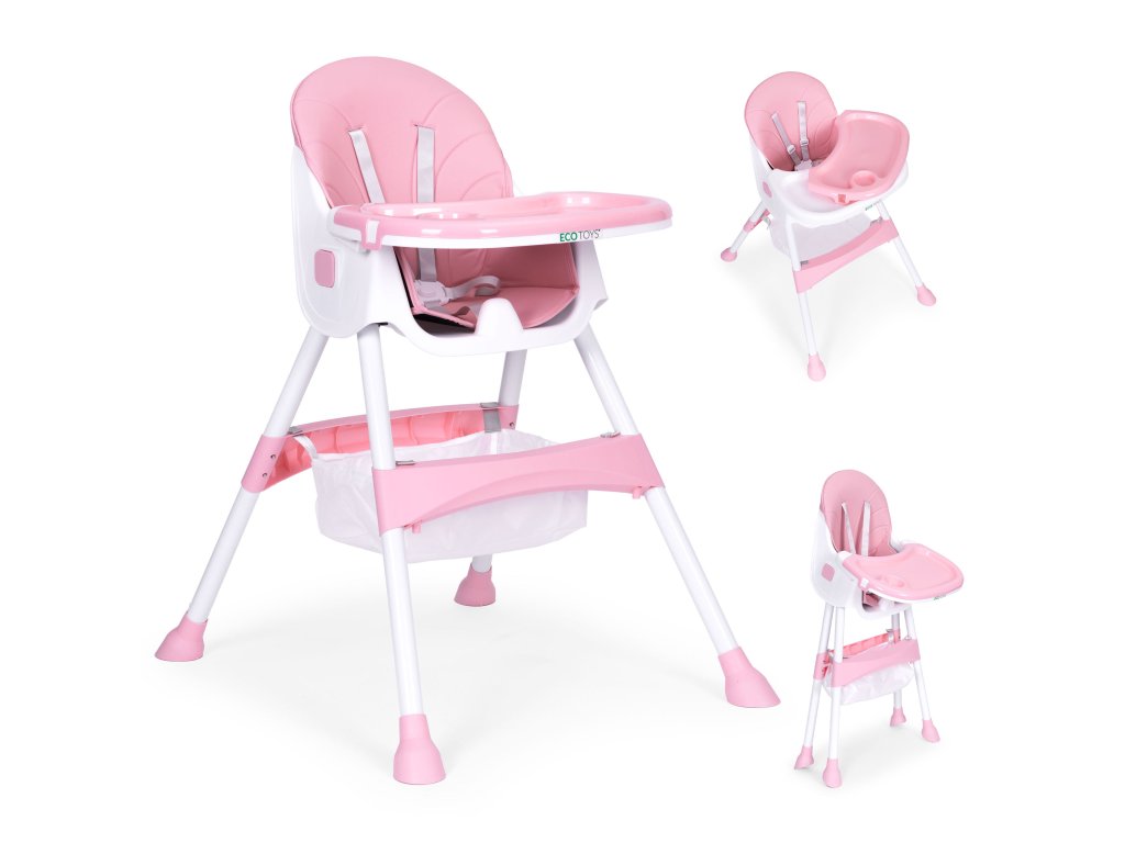 Detská jedálenská stolička ECOTOYS, skladacia, ružová