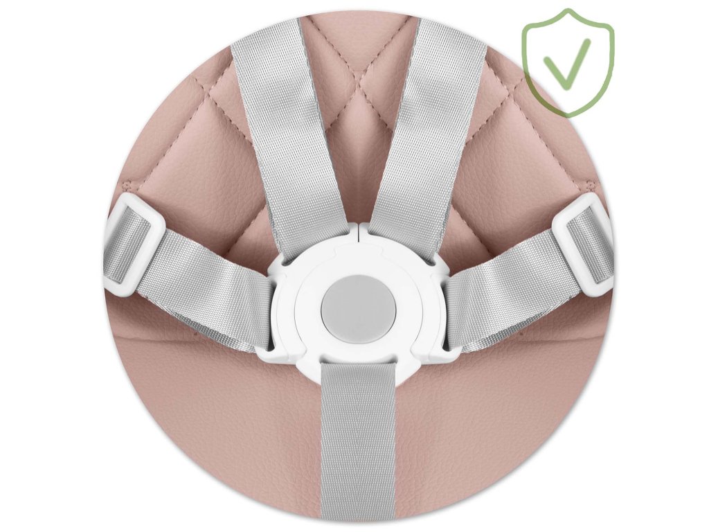 Spoľahlivé a osvedčené päťbodové bezpečnostné pásy zabezpečujú, aby dieťa nemohlo samo opustiť stoličku a riskovať pád.