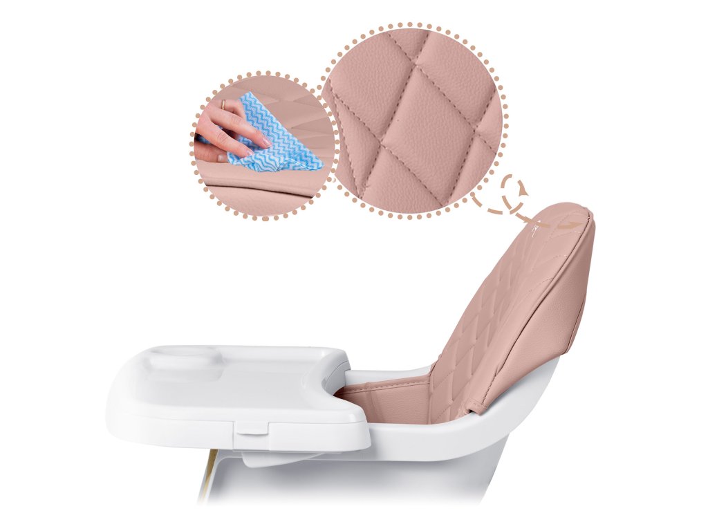 Stolička ponúka možnosť voľného nastavenia vzdialenosti medzi vaničkou a dieťaťom. Možno ju tiež kedykoľvek úplne demontovať.