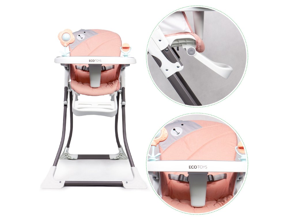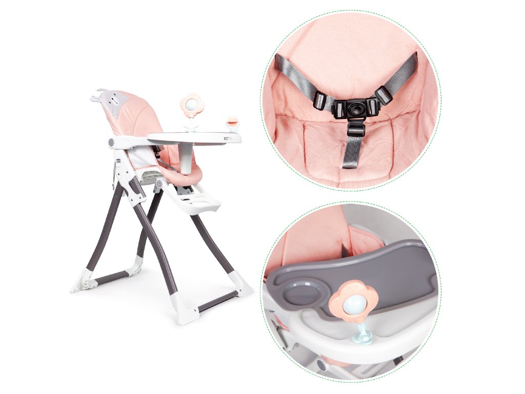 Stolička na kŕmenie je ideálnou voľbou pre všetkých rodičov a ich deti od 6 mesiacov. Uľahčite si konzumáciu jedál s dospelými pri jednom stole, aby dieťa pozorovalo, napodobňovalo a učilo sa správnemu správaniu. Okrem moderného dizajnu a mnohých funkcií stolička dokonale plní svoju úlohu, zaistenie bezpečnosti a pohodlnú polohu. Vďaka širokému podnosu bude môcť batoľa nielen jesť, ale aj hrať sa, skladať kocky alebo kresliť, takže si svoj nový špeciálny kus nábytku rýchlo obľúbi.