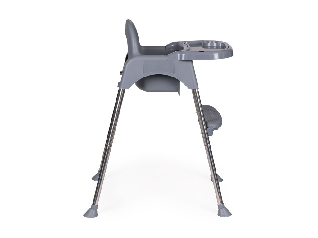 Stolička má možnosť meniť svoju výšku. Nohy a podnožku môžete ľahko demontovať tým sa z vysokej stoličky stane nižšia stolička. Ak sa vaše dieťatko osamostatňuje a vy ho už nemusíte pozorne sledovať, nižšia stolička bude pre neho ideálna.