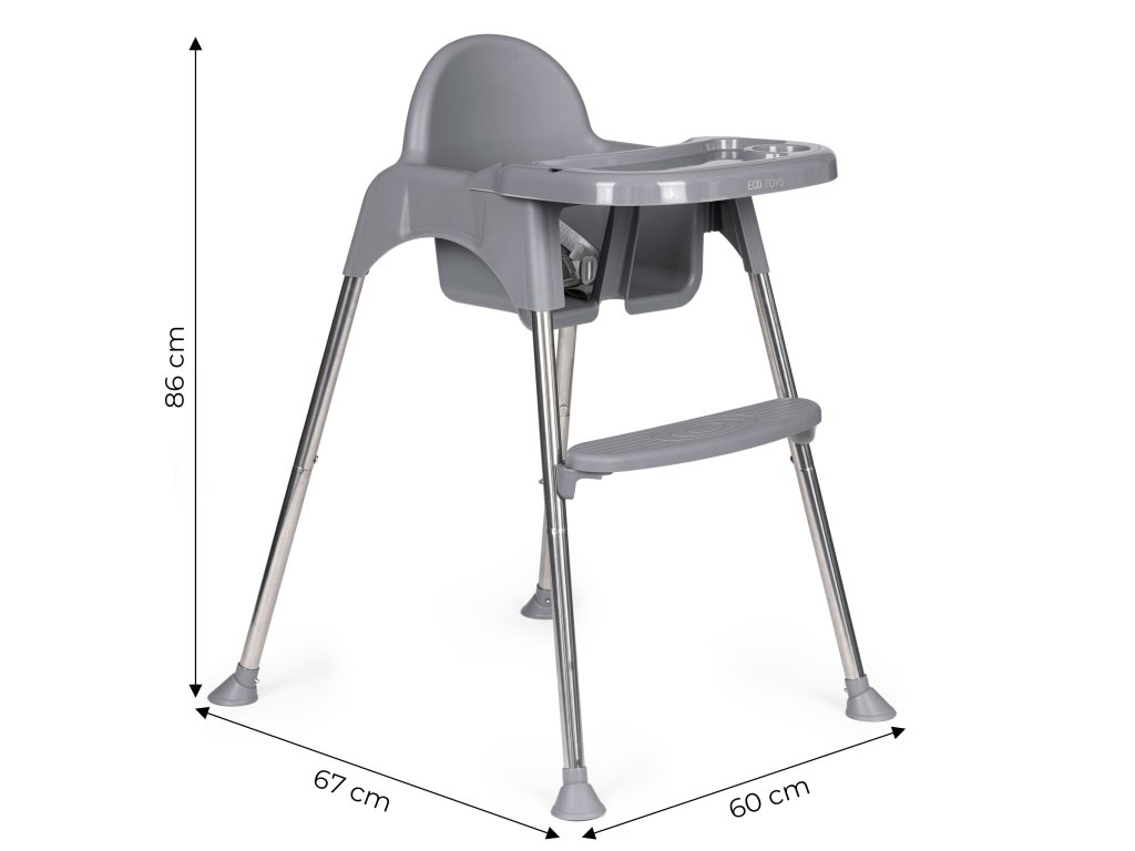 Jedálenská stolička 2v1 ECOTOYS, nastaviteľná, šedá