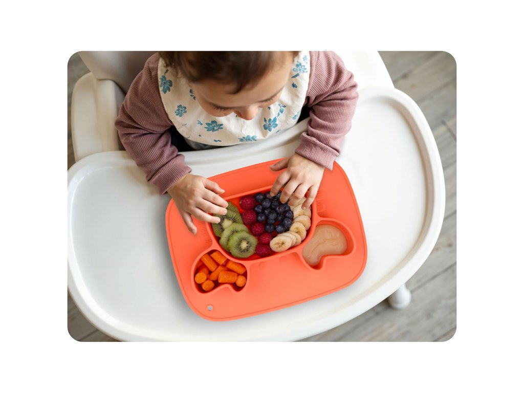 Vďaka vynikajúco priľnavému povrchu tanier pevne drží na stole - bez posúvania a rizika prevrátenia. To znamená menej neporiadku, viac pokoja a bezpečné prostredie na učenie sa samostatného jedenia.
