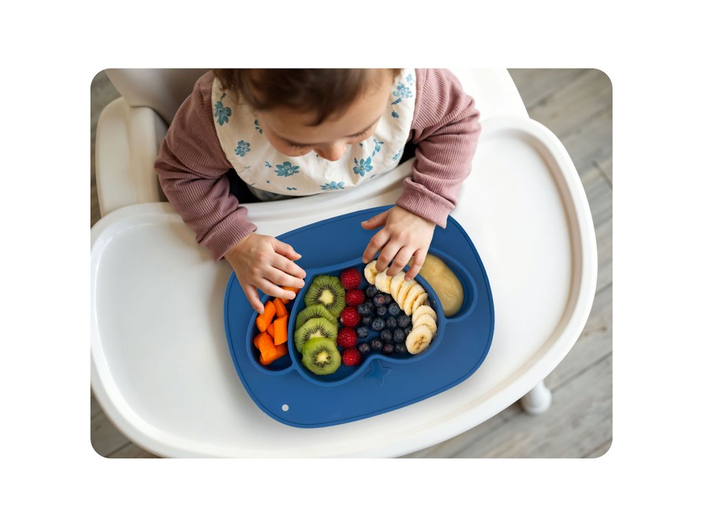 Vďaka vynikajúco priľnavému povrchu tanier pevne drží na stole - bez posúvania a rizika prevrátenia. To znamená menej neporiadku, viac pokoja a bezpečné prostredie na učenie sa samostatného jedenia.
