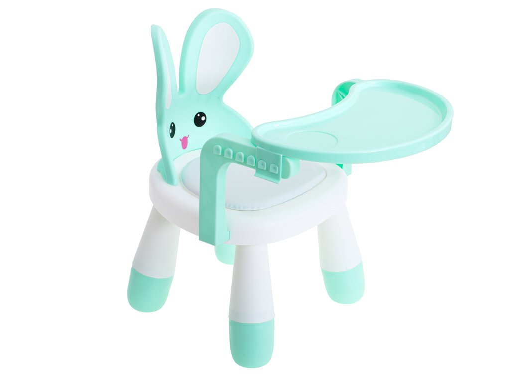 Detská stolička na kŕmenie a hranie Zajačik – mäta, nastaviteľná, umývateľná