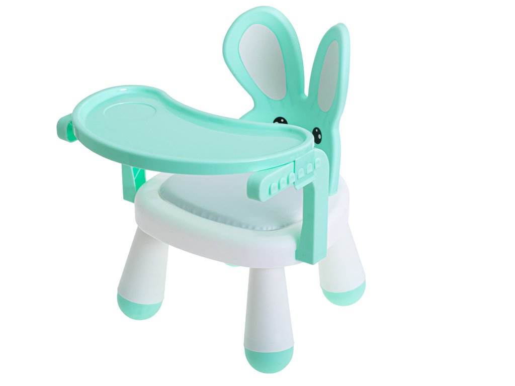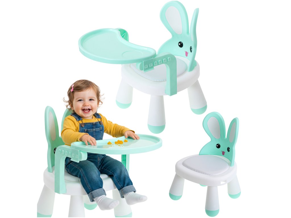 Roztomilá vysoká stolička v tvare zajačika so stolíkom je ideálnym a mimoriadne praktickým kusom nábytku do detských interiérov.