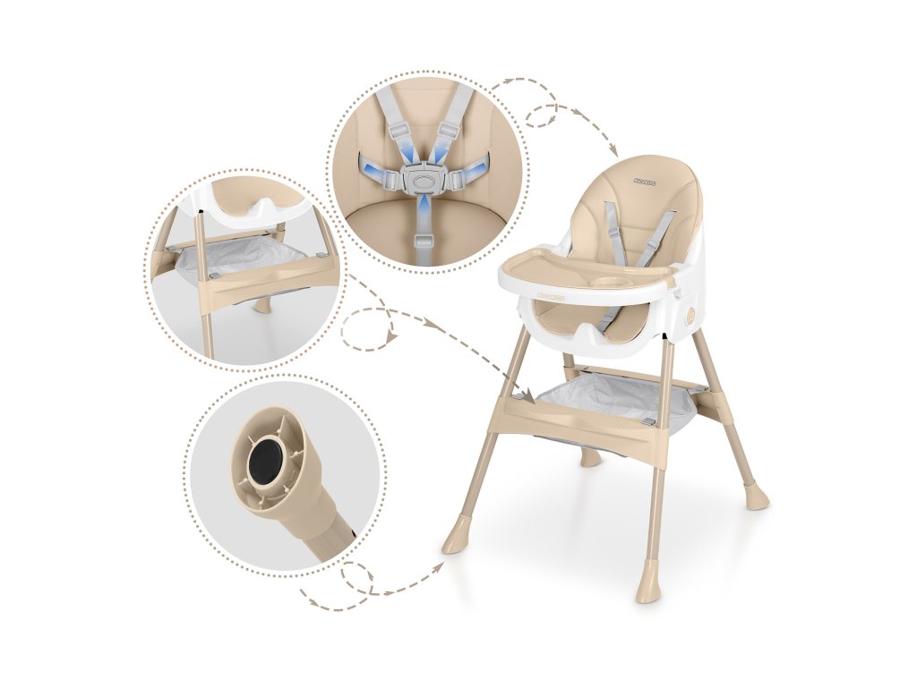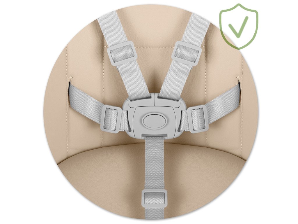 Spoľahlivé a osvedčené päťbodové bezpečnostné pásy zabezpečia, že vaše dieťa nebude môcť samo opustiť stoličku a riskovať pád.
