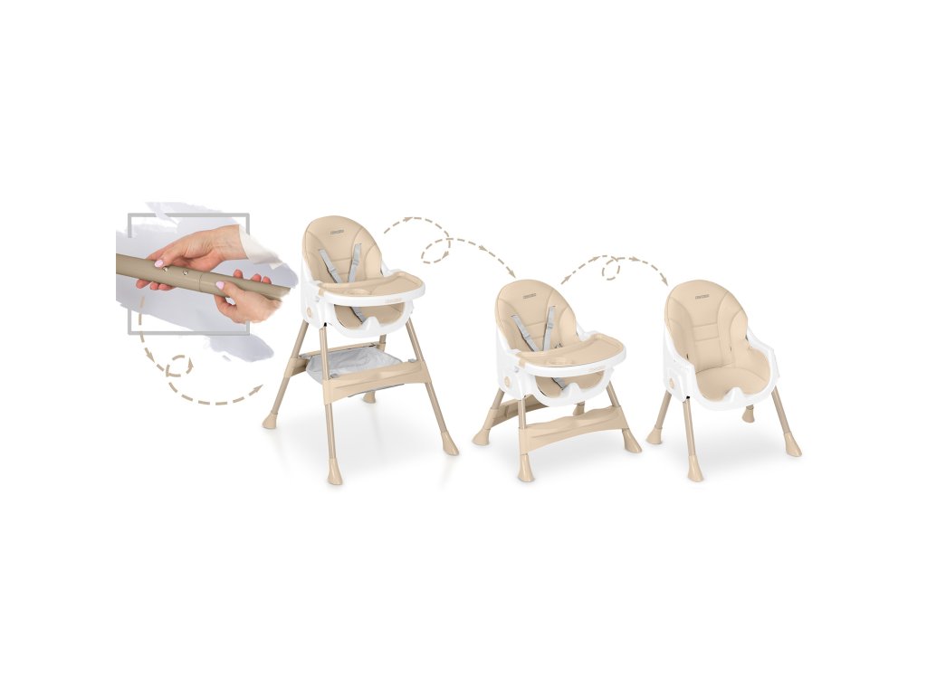 Stolička ponúka možnosť voľného nastavenia vzdialenosti medzi vaničkou a dieťaťom. Možno ju tiež kedykoľvek úplne demontovať.