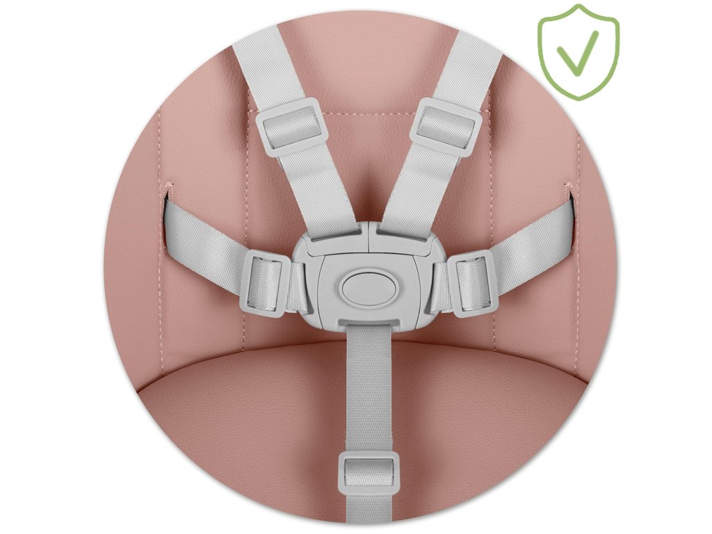 Spoľahlivé a osvedčené päťbodové bezpečnostné pásy zabezpečia, že vaše dieťa nebude môcť samo opustiť stoličku a riskovať pád.