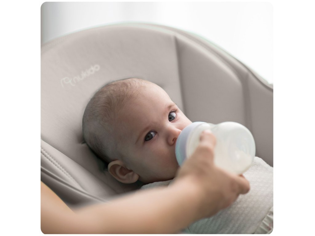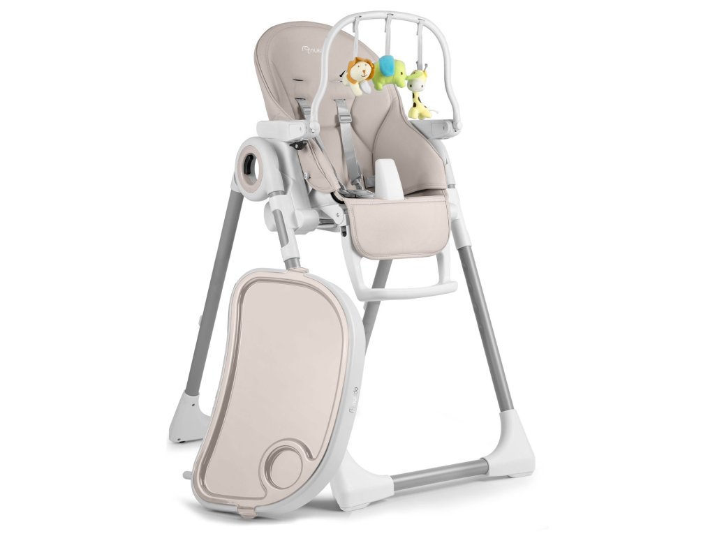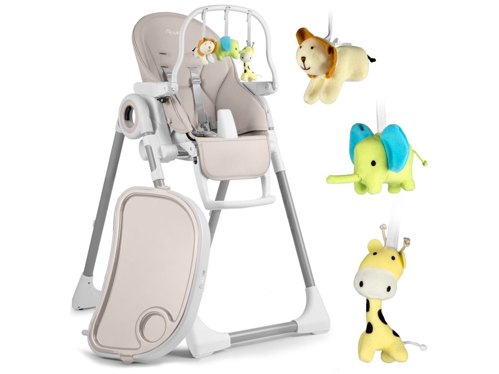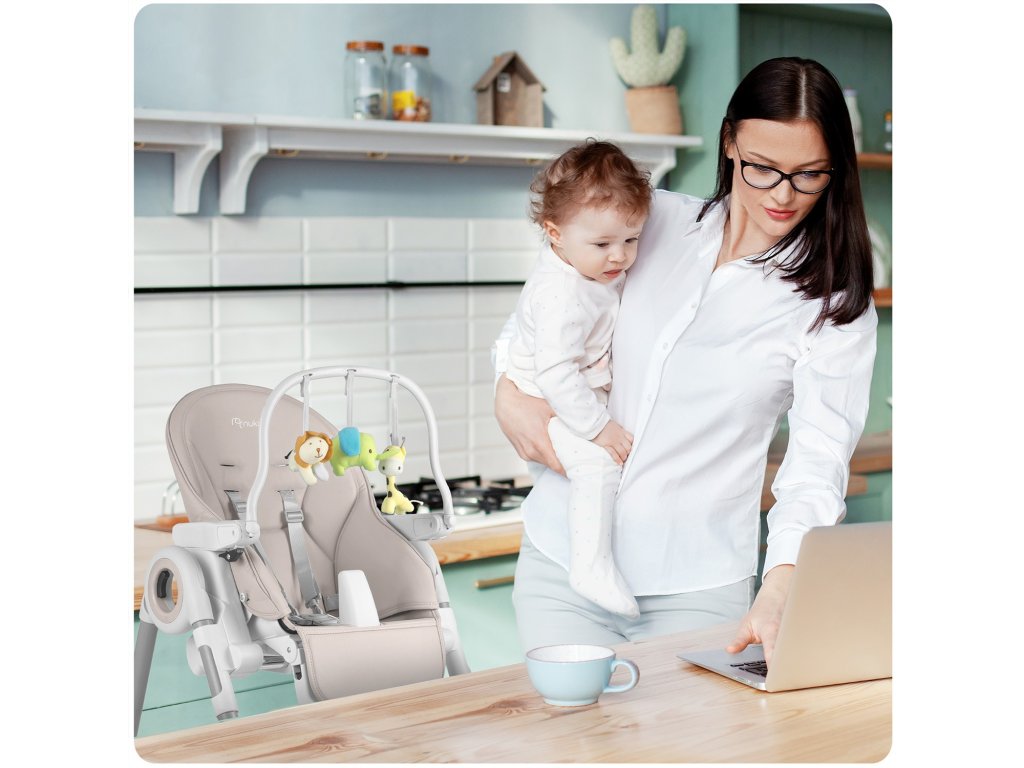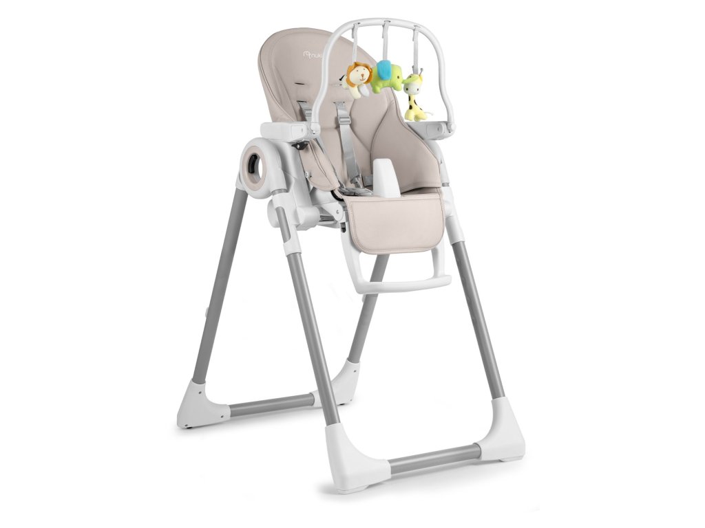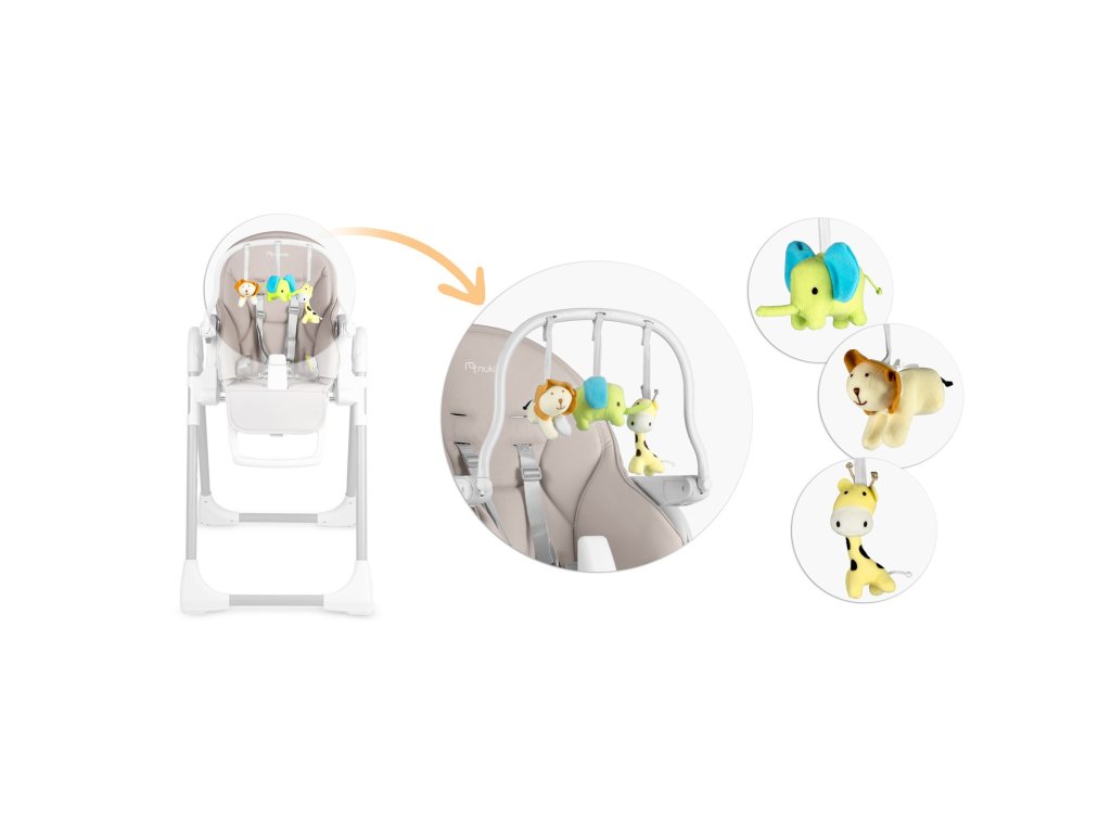 Detská jedálenská stolička so stolíkom, ležadlo Belo sivé + čelenka s hračkami