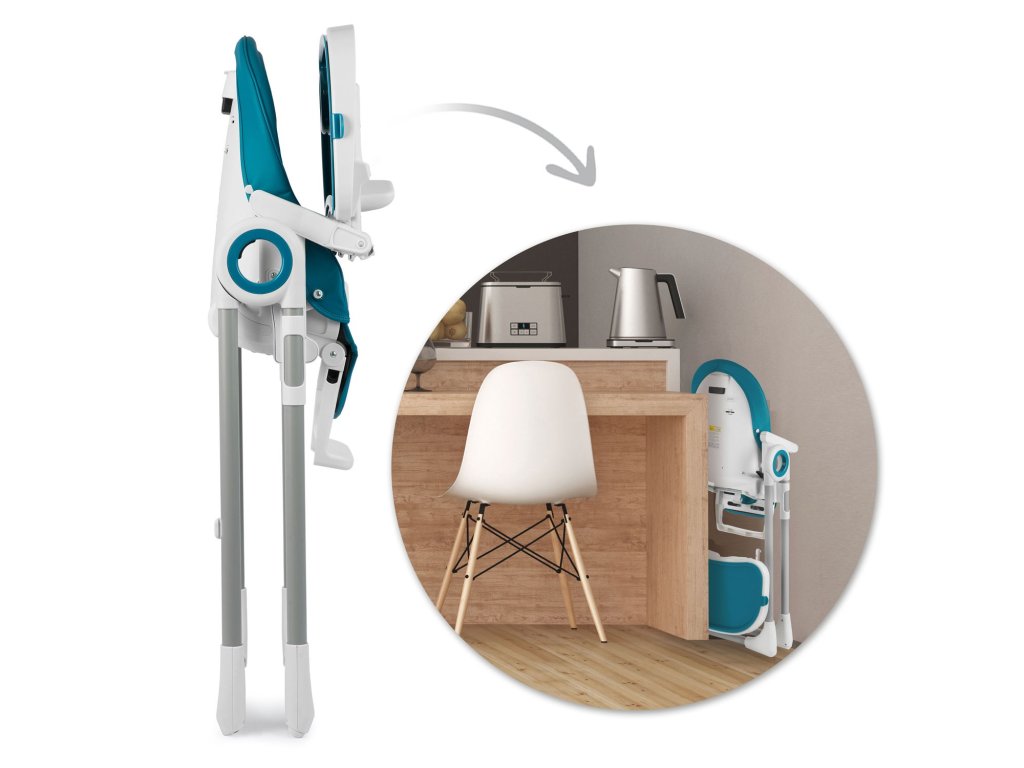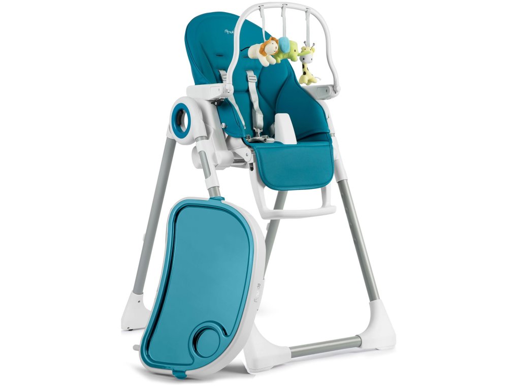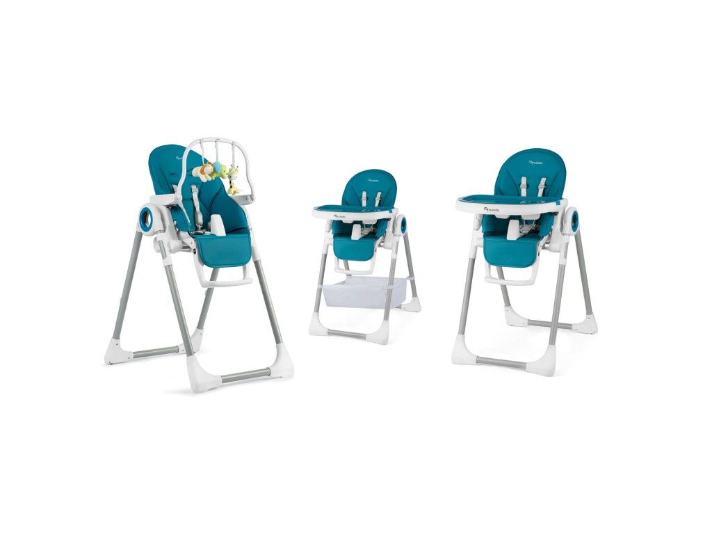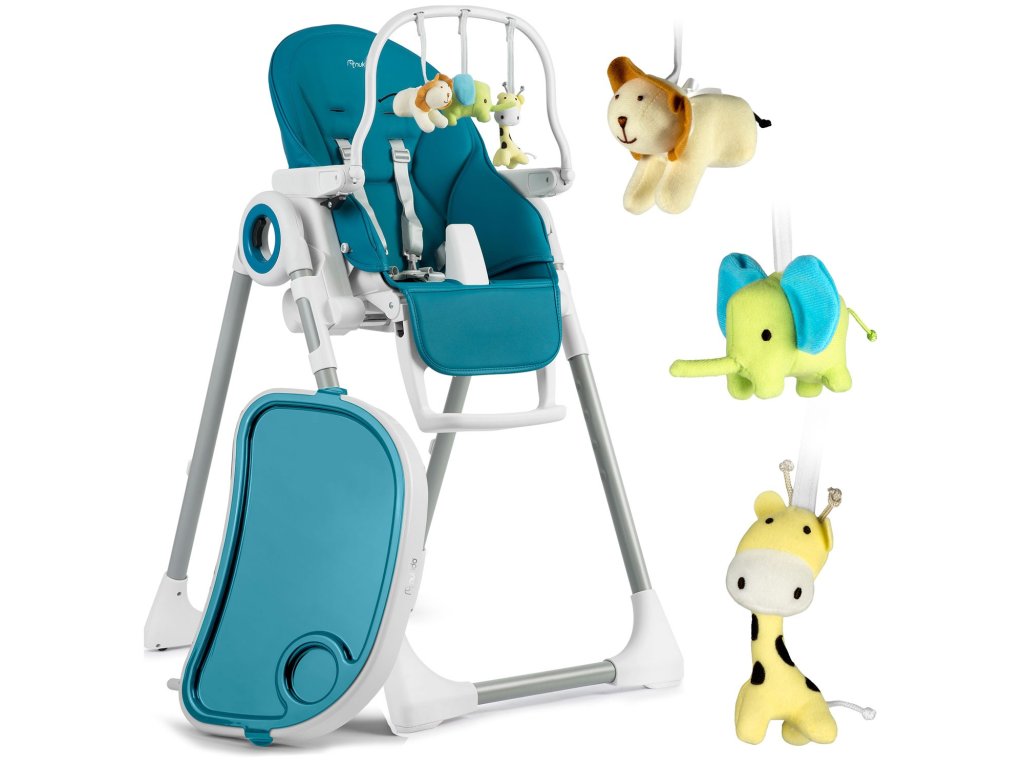 Detská jedálenská stolička so stolíkom, ležadlo Belo tmavomodré + čelenka s hračkami