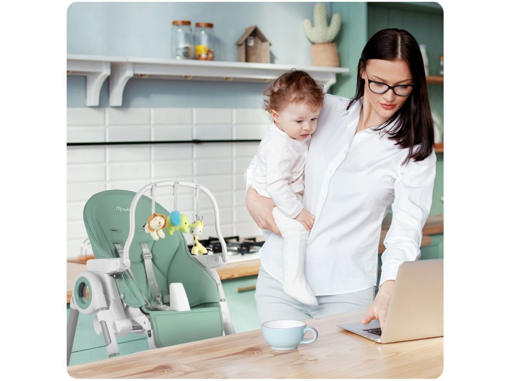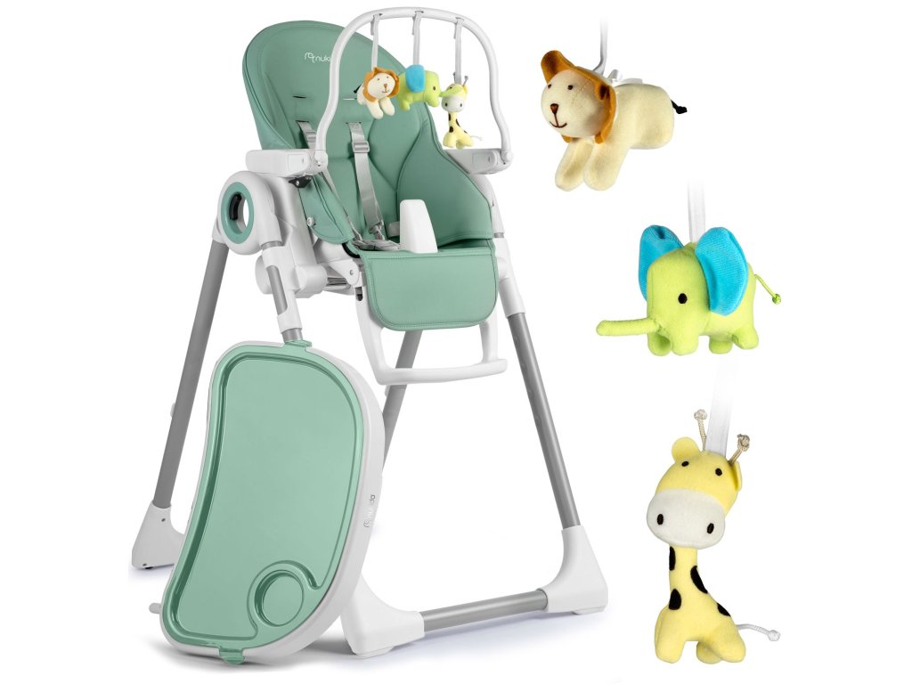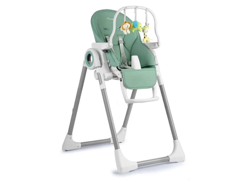 Detská jedálenská stolička so stolíkom, ležadlo Belo zelené + čelenka s hračkami