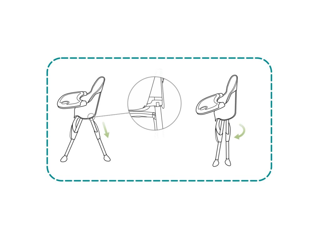 Ak chcete stoličku zložiť, uchopte zadné nohy za rúrky a potiahnite ich nadol, aby sa uvoľnil blokovací mechanizmus. Potom nohy sklopte dovnútra. Ak chcete stoličku rozložiť, postupujte v opačnom poradí.