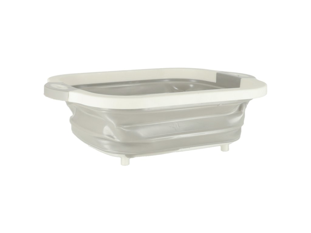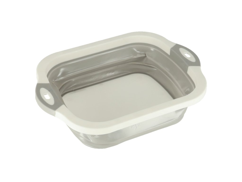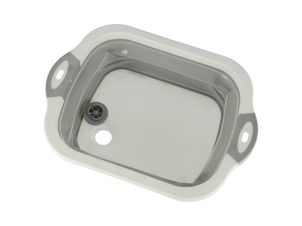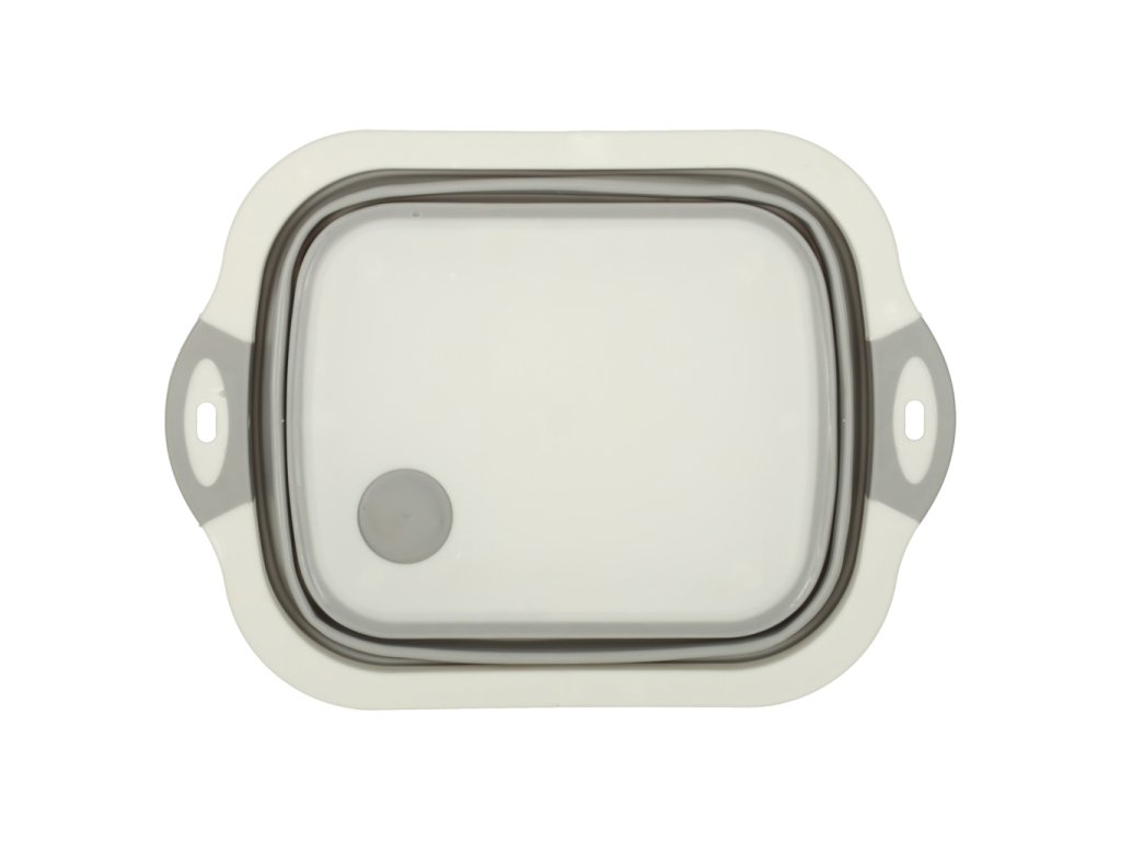 ● Farba: bielo-šedá ● Materiál: pružný silikón + plast ● Objem: 5,5 l ● Plocha dosky: 25,5 × 20 cm ● Rozmery v zloženom stave: Rozmery: 37 × 27 × 2,5 cm ● Rozložené rozmery: 37 × 27 × 6,8 - 12 cm ● Výška misky: 29 × 23,5 × 10 cm a 29 × 23,5 × 5,5 cm ● Silikónová zátka na odtok vody ● Pohodlné držadlá na prenášanie ● Balenie: fólia (37 × 27 × 2,5 cm)