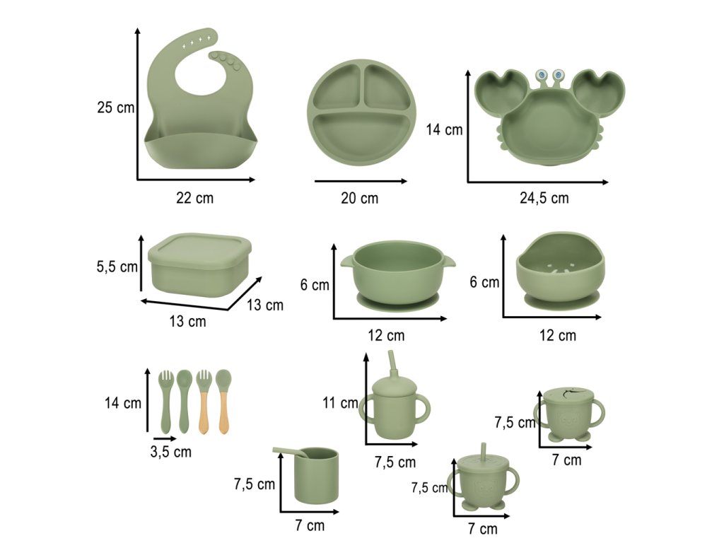 Celá súprava má zelenú farbu, vďaka ktorej sa každé jedlo stane vzrušujúcim dobrodružstvom. Používaním riadu si vaše dieťa rozvíja manuálne zručnosti a získava väčšiu samostatnosť.