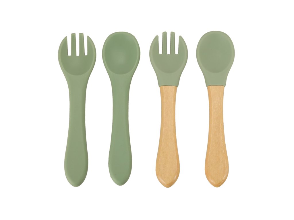 Súprava príborov je vyrobená z potravinárskeho silikónu, čo zaručuje, že neobsahujú škodlivé látky a sú dokonale prispôsobené jemným detským ústam.