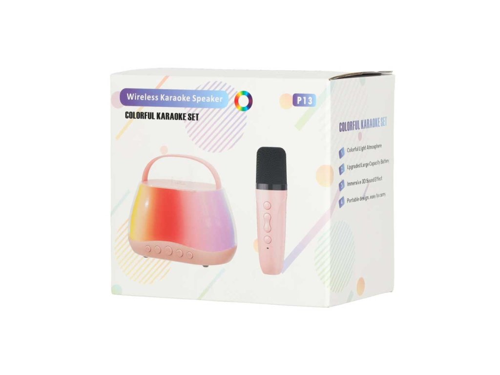 - Bezdrôtový karaoke reproduktor poskytuje výkonný zvuk a zároveň funguje ako praktický bezdrôtový reproduktor- Viacfarebné LED podsvietenie vytvára jedinečnú atmosféru párty, upúta pozornosť a robí párty ešte atraktívnejšou pre deti aj dospelých, a to aj pri slabom osvetlení.