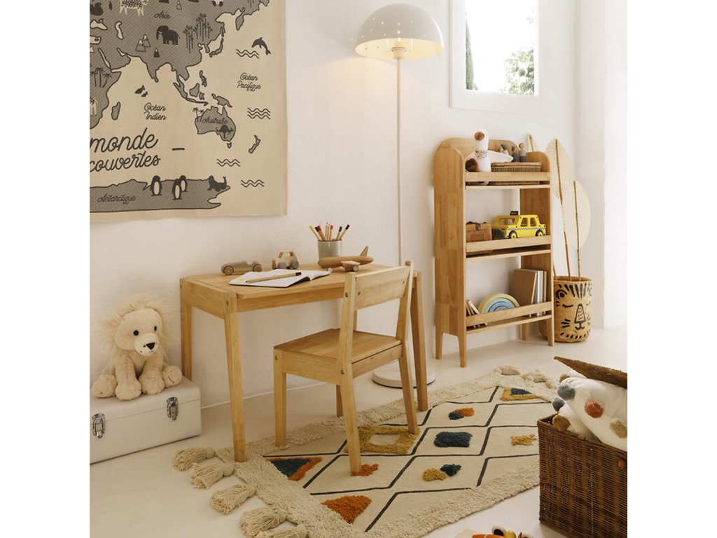 Knižnica s tromi policami do ktorej sa zmestí veľké množstvo kníh a spoločenských hier. Policové zábradlia zabránia pádu predmetov. Vďaka zníženej výške je vhodný aj pre najmenších.