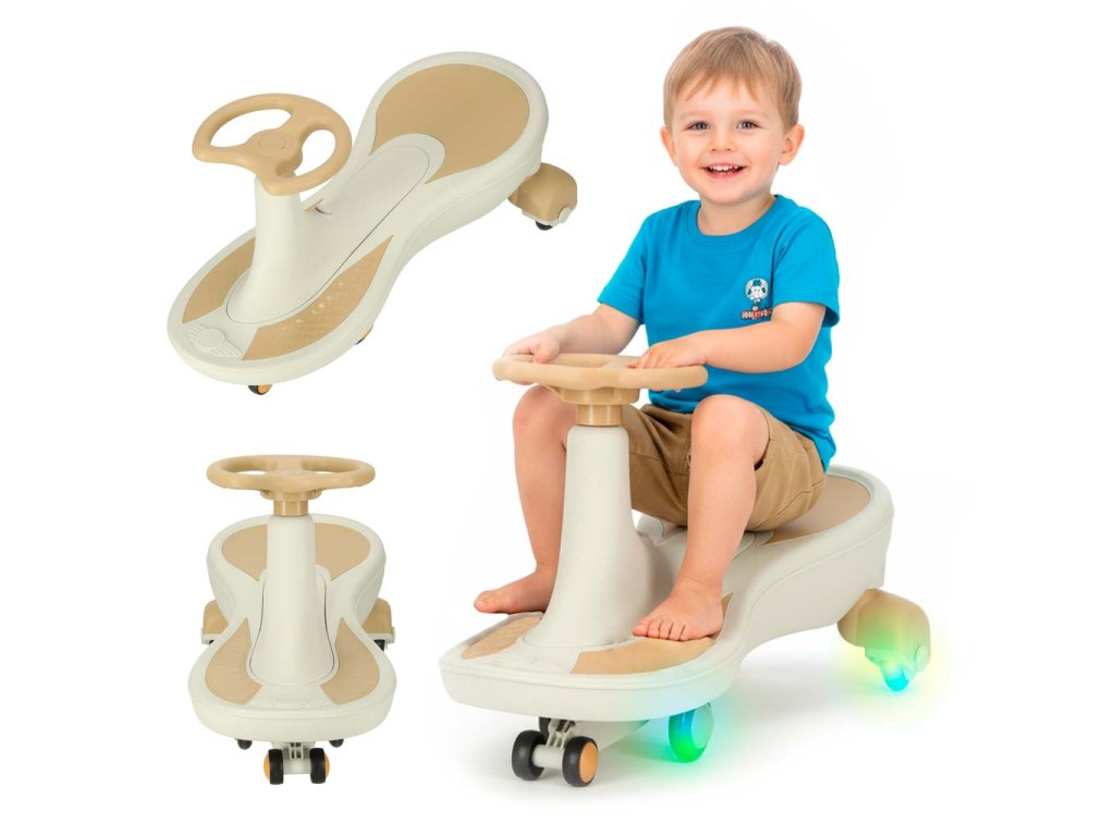 GRAVITAČNÉ AUTO SVIETIACE LED KOLESÁ S PREHRÁVANÍM HUDBY 76CM BÉŽOVÁ MAX 100KG