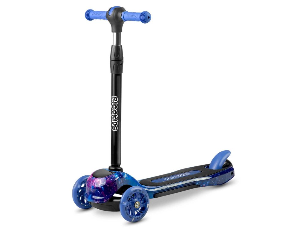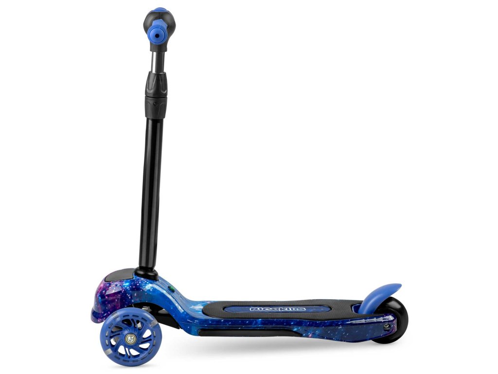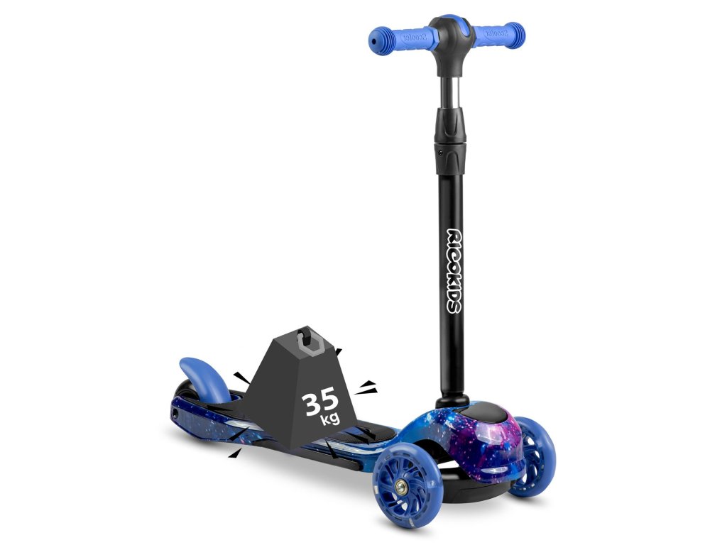 Tento skúter vám umožňuje riadiť ho prostredníctvom vyvažovania tela, bez otáčania volantom. Stačí sa len nakloniť požadovaným smerom - a je to. Vaše dieťa si rýchlo osvojí túto techniku jazdy a zároveň cvičí svoj zmysel pre rovnováhu. Je to tiež zariadenie bezpečnejšie pre menšie deti - kolobežka sa vďaka trom kolieskam sama udrží vo vzpriamenej polohe.
