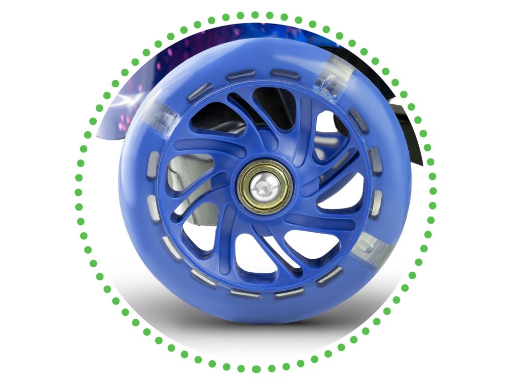 - skvelá zábava! Kolobežka má zabudované dynamo, vďaka ktorému kolesá sa počas jazdy rozsvietia!