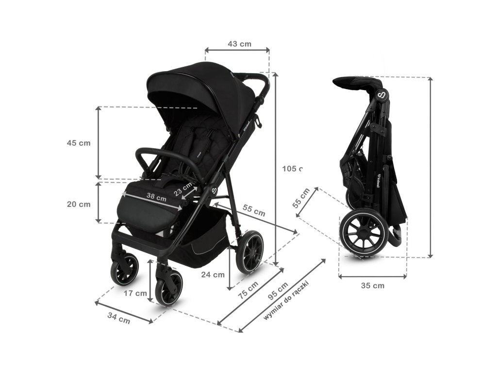 - Rozmery kočíka v zloženom stave: 35 x 55 x 84 cm