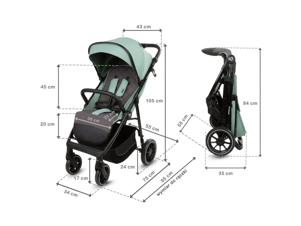 - Rozmery kočíka v zloženom stave: 35 x 55 x 84 cm