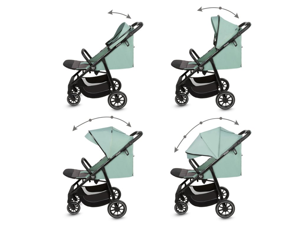 Nepremokavá a roztiahnuteľná strieška s filtrom UPF 50+ účinne ochráni vaše dieťa pred slnkom a vetrom. Kočík Enzo má trojstupňové nastavenie striešky, takže si môžete jednoducho prispôsobiť jej polohu prevládajúcim poveternostným podmienkam. Prídavné okienko poskytuje neustály výhľad na drobčeka počas prechádzky, čo vám dáva plnú kontrolu a pokoj v duši.