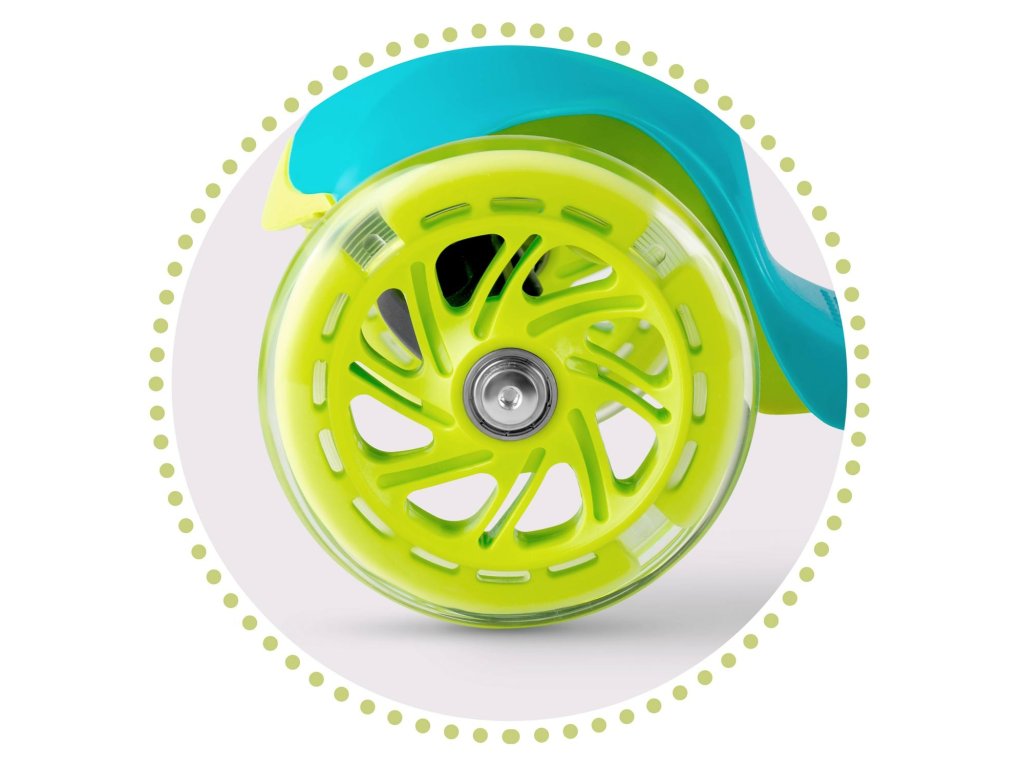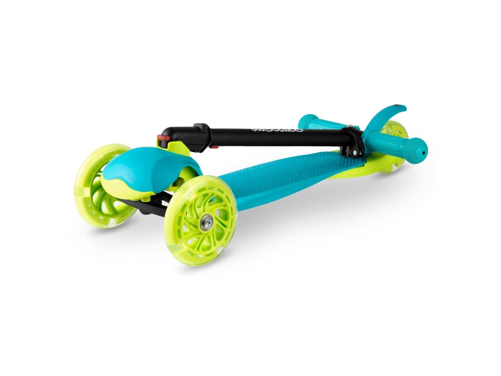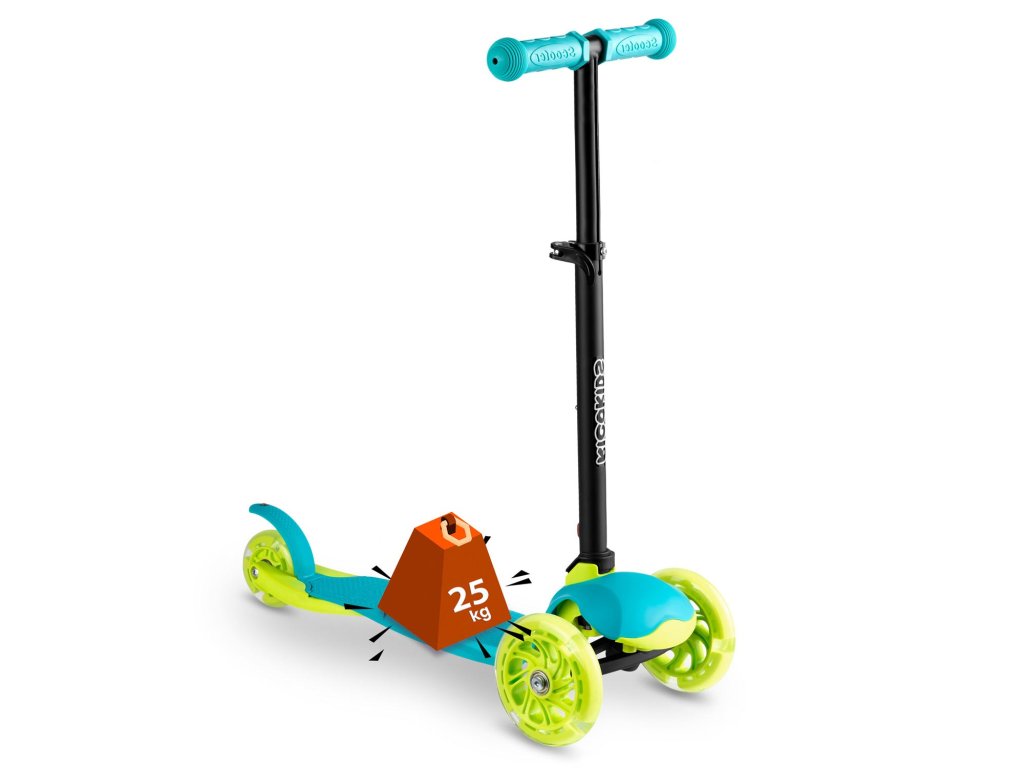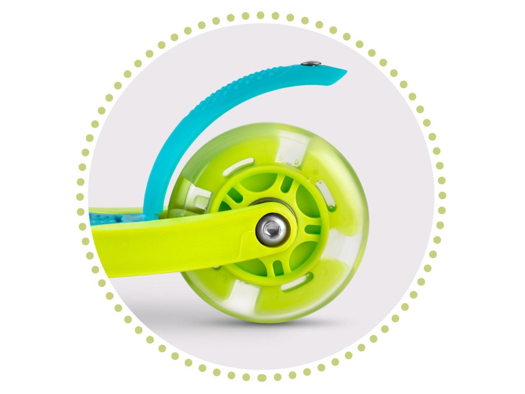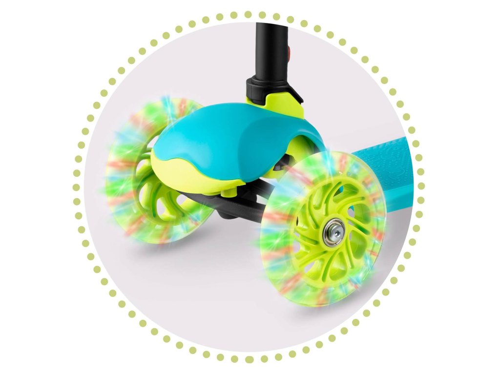 Tento skúter vám umožňuje riadiť ho prostredníctvom vyvažovania tela, bez otáčania volantom. Stačí sa len nakloniť požadovaným smerom - a je to. Vaše dieťa si rýchlo osvojí túto techniku jazdy a zároveň cvičí svoj zmysel pre rovnováhu. Je to tiež zariadenie bezpečnejšie pre menšie deti - kolobežka sa vďaka trom kolieskam sama udrží vo vzpriamenej polohe.