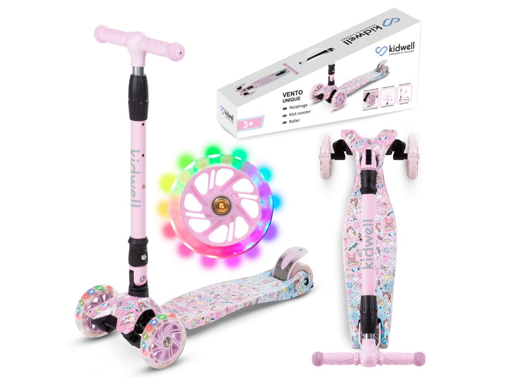 Trojkolesová balančná kolobežka VENTONavrhnuté s ohľadom na deti a s dôrazom na každý detail. Pohyb na ňom je hladký a bezpečný a naučiť sa jazdiť je ľahké a príjemné. Trojkolesová kolobežka VENTO je perfektne vyvážená, stabilná a určite sa stane spoločníkom vášho dieťaťa. Podsvietené LED kolieska a zaujímavý dizajn potešia každého malého užívateľa.