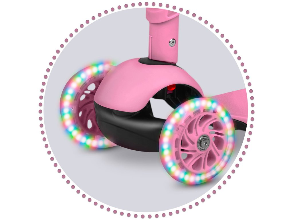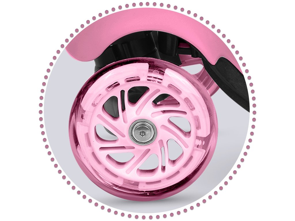 - skvelá zábava! Kolobežka má zabudované dynamo, vďaka ktorému sa kolesá sa počas jazdy rozsvietia!