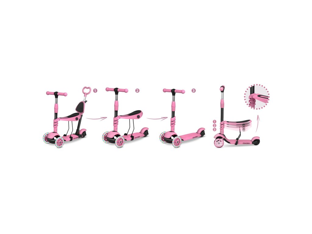 ✔ 3-stupňový nastavenie výšky sedadla a riadidiel,