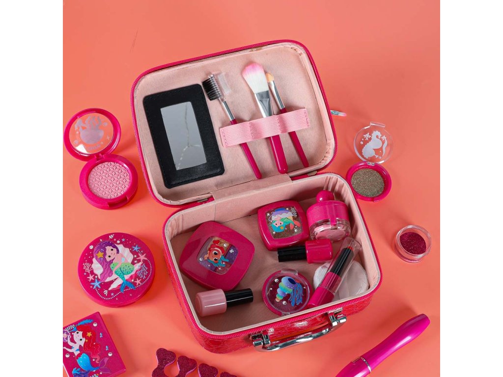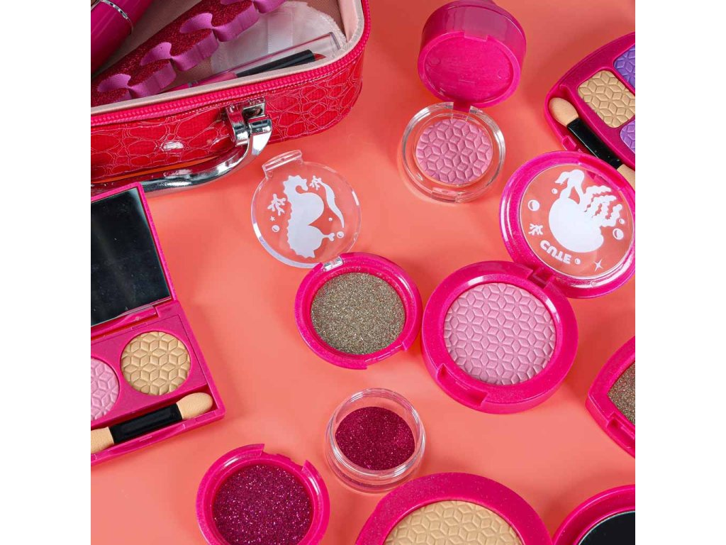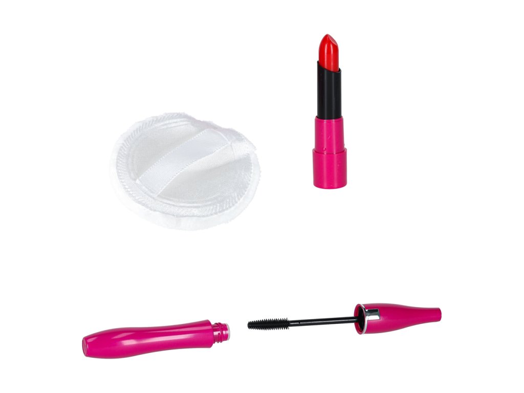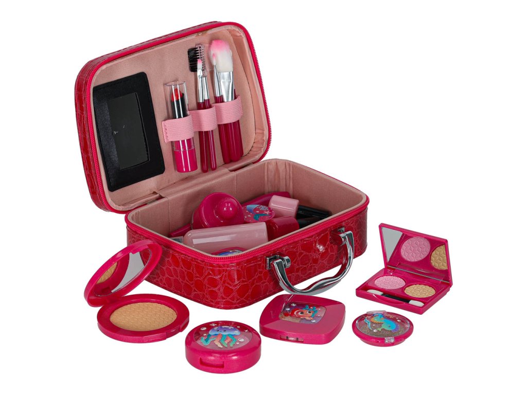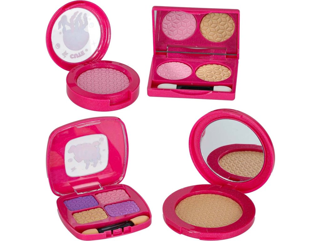 Obsah súpravy: - Kufrík so zrkadlom- štetec na rúže, štetec na obočie, 3x štetec na oči-.Púder + hubka- Tvárenka- Dvojité očné tiene + hubka - Štvorité očné tiene + hubka - Rúž- 4x nádobky na trblietky na oči- Lesk na pery v nádobke- Maskara- Difuzér s pumpičkou- 2x lak na nechty- 1x oddeľovač nechtov- Návod na použitie Technické špecifikácie: - Vek: 3+- Materiál: plast- Farba: odtiene ružovejTruhlica:- Rozmery zloženejtruhlice: 19,5 x 15 x 7,5 cm- Rozmery rozloženej truhlice: 19,5 x 18 x 18 cm- Hmotnosť: 0,50 kg - Hmotnosť vrátane obalu: 0,58 kg- Rozmery farebného kartónového obalu : 20,5 x 16 x 8,5 cm