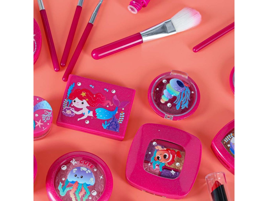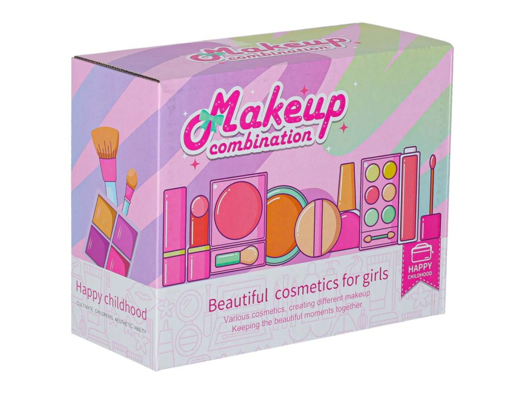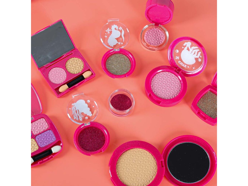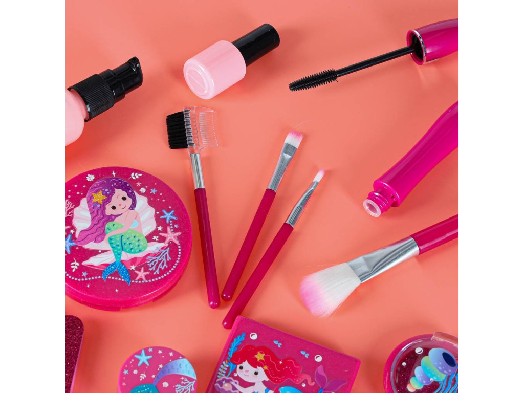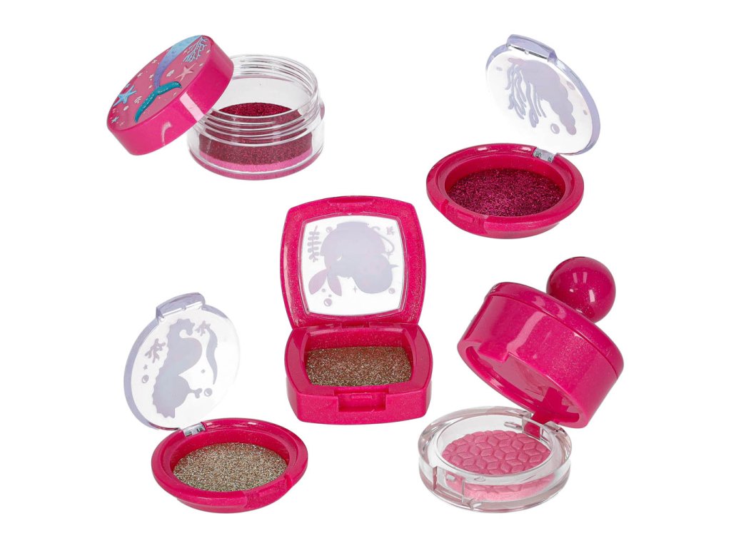 Obsah súpravy: - Kufrík so zrkadlom- štetec na rúže, štetec na obočie, 3x štetec na oči-.Púder + hubka- Tvárenka- Dvojité očné tiene + hubka - Štvorité očné tiene + hubka - Rúž- 4x nádobky na trblietky na oči- Lesk na pery v nádobke- Maskara- Difuzér s pumpičkou- 2x lak na nechty- 1x oddeľovač nechtov- Návod na použitie Technické špecifikácie: - Vek: 3+- Materiál: plast- Farba: odtiene ružovejTruhlica:- Rozmery zloženejtruhlice: 19,5 x 15 x 7,5 cm- Rozmery rozloženej truhlice: 19,5 x 18 x 18 cm- Hmotnosť: 0,50 kg - Hmotnosť vrátane obalu: 0,58 kg- Rozmery farebného kartónového obalu : 20,5 x 16 x 8,5 cm